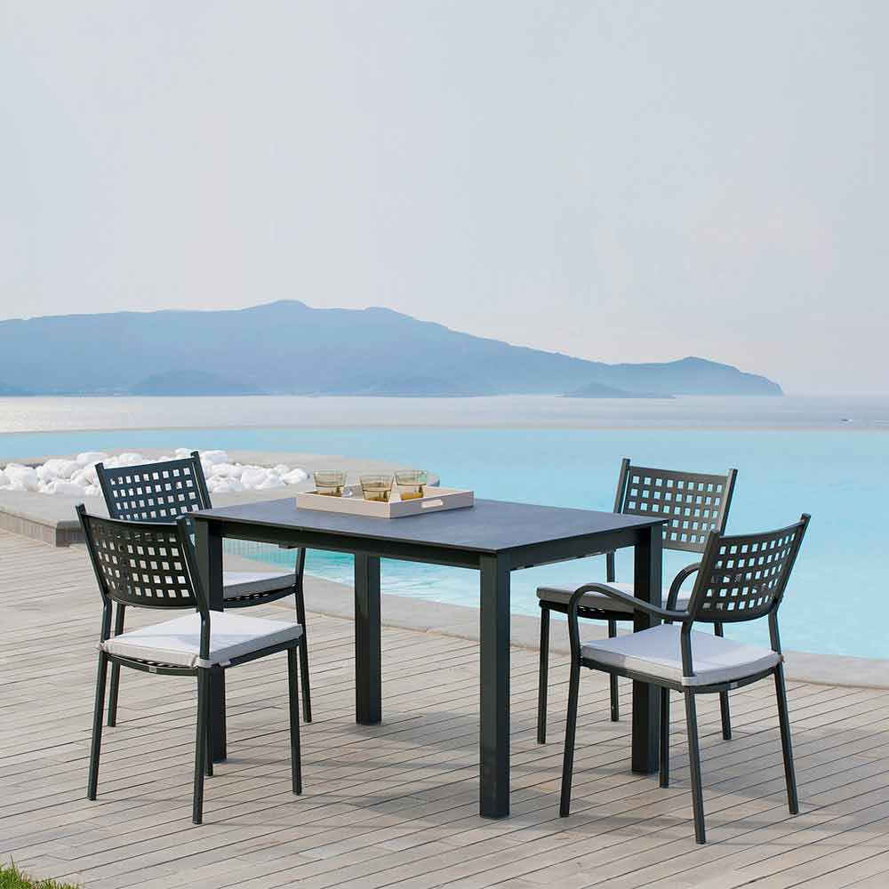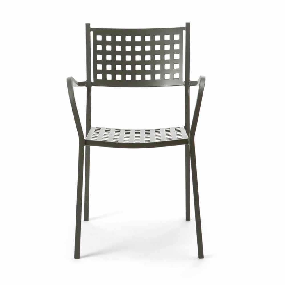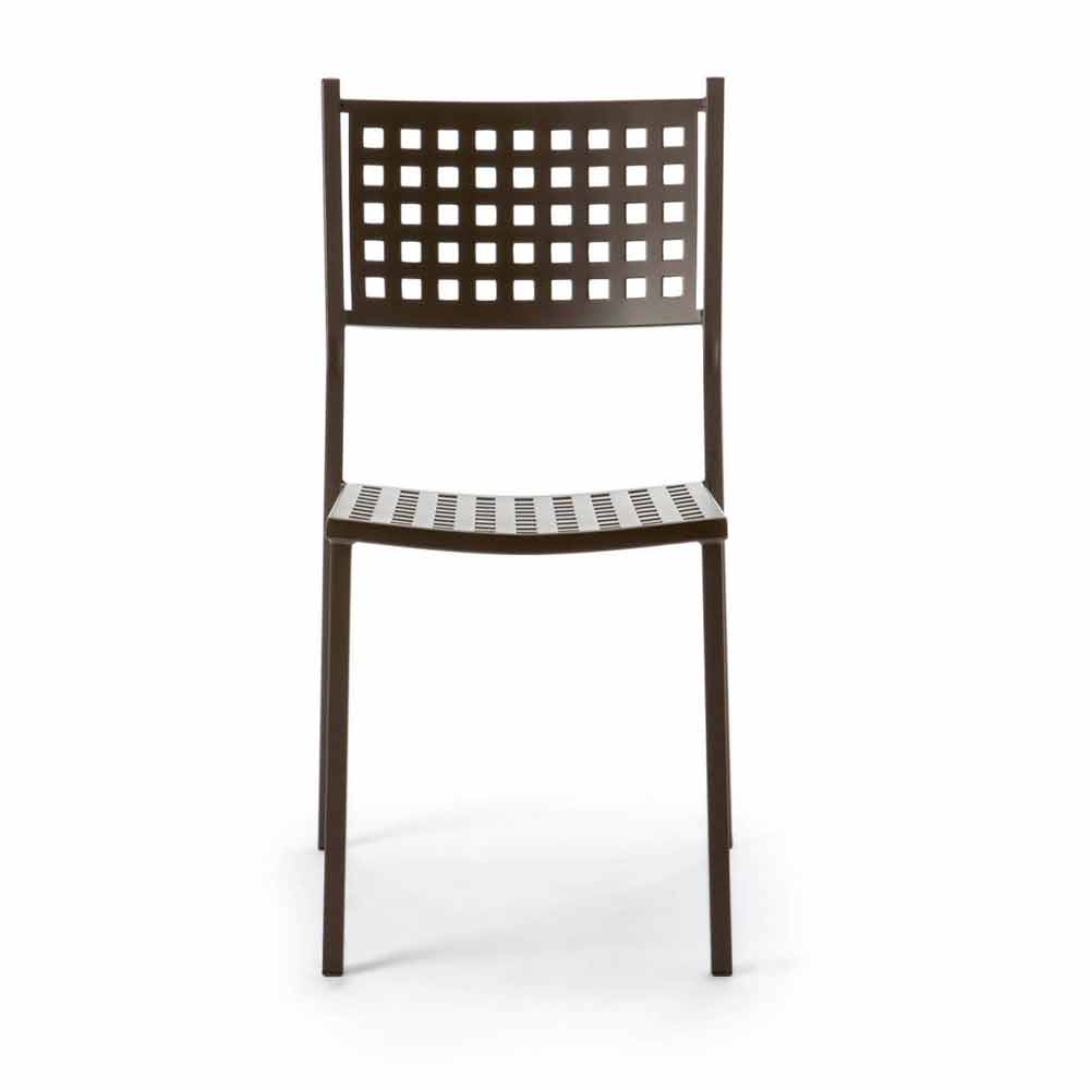Moderne buitenstoel van gepoedercoat gegalvaniseerd ijzer, stapelbaar, Made in Italy, 8 stuks.