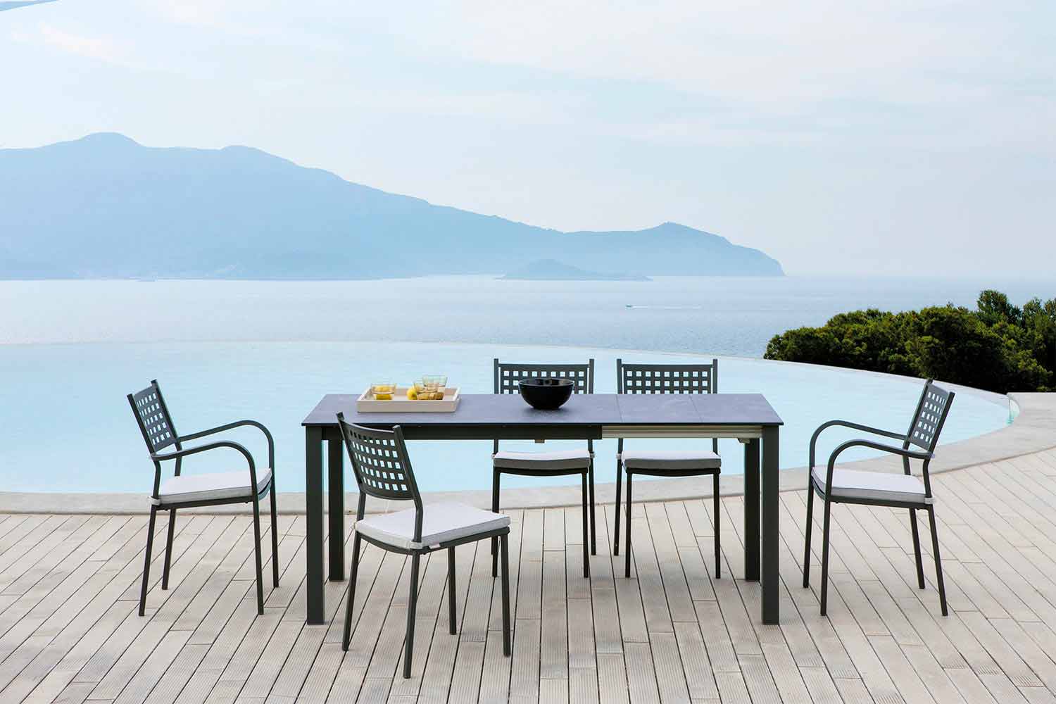 Deze lijn outdoorproducten vertegenwoordigt de perfecte combinatie van tastbaar en visueel effect dankzij de gebruikte materialen en de prachtige ondoorzichtige afwerkingen. Elk product is gemaakt met hoogwaardige grondstoffen die een uitstekende duurzaamheid bieden en tegelijkertijd perfect bestand zijn tegen de meest uiteenlopende weersomstandigheden. De productie is gebaseerd op de kracht van Made in Italy en vindt plaats met behulp van geavanceerde technologieën om de klant een robuust, veilig en onderhoudsvriendelijk eindproduct te garanderen.