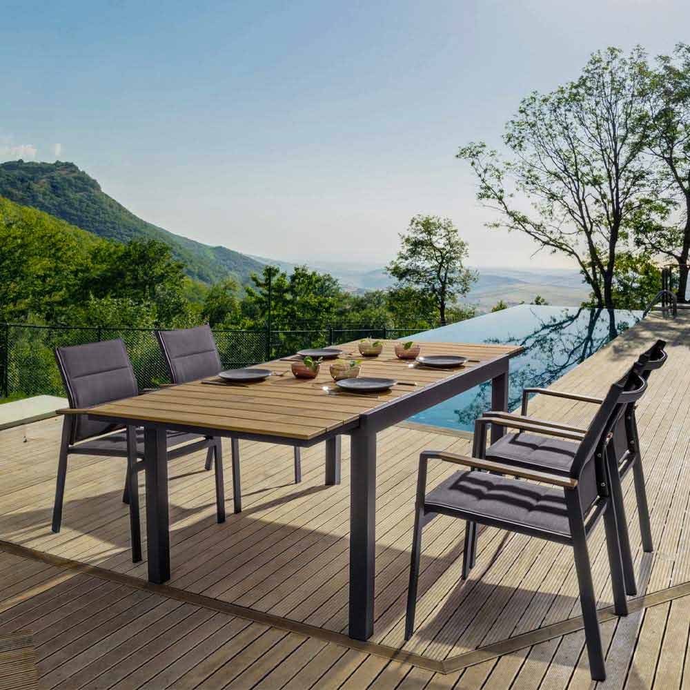Stapelbare tuinstoel in antracietgrijs aluminium en teak - Aidan