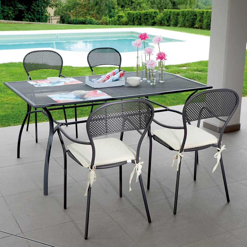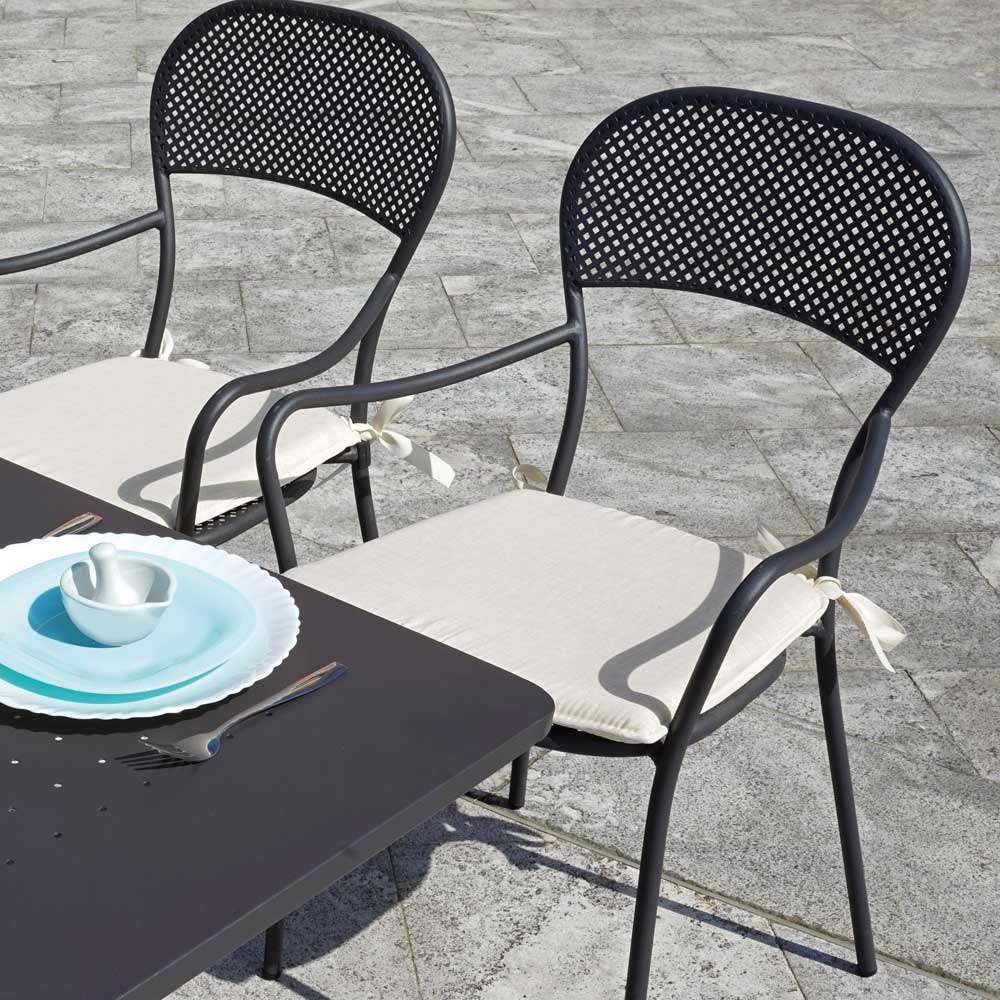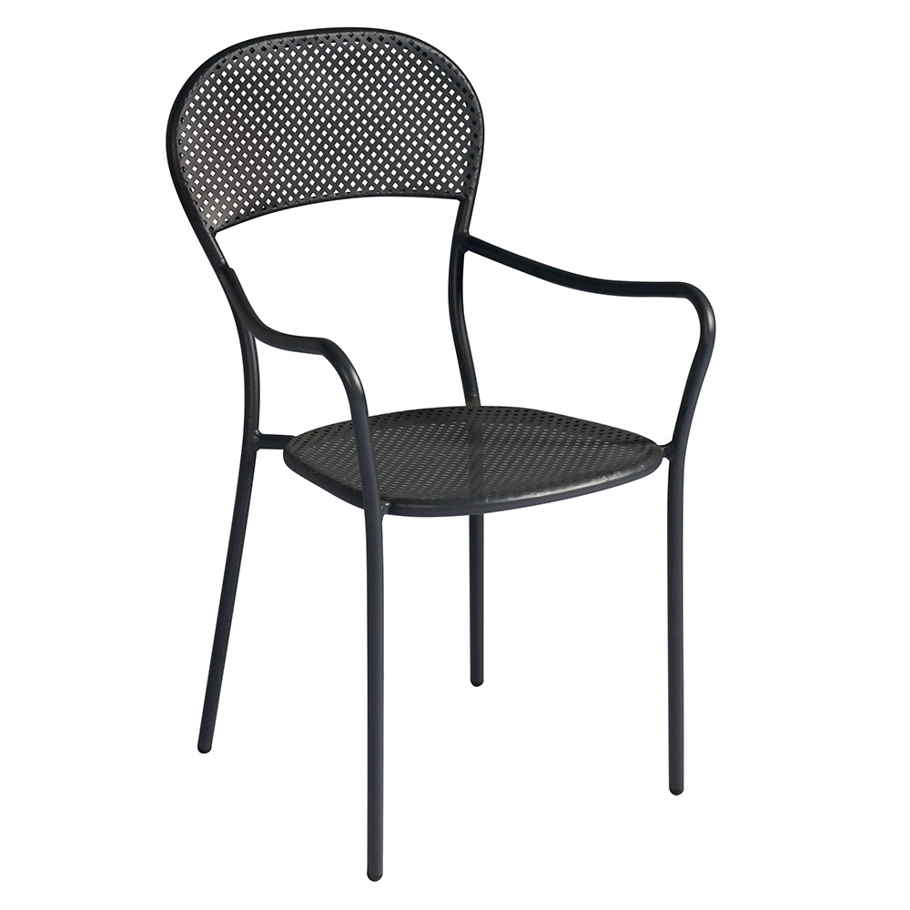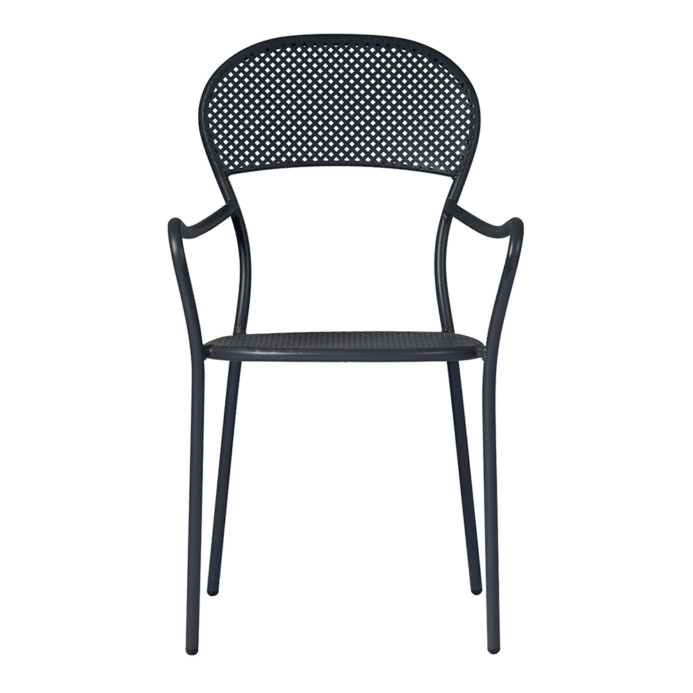 Buitenstoel gemaakt van ijzer met antracietgrijze afwerking met stapelbare structuur compleet met praktische armleuningen . Dit moderne meubel heeft een onmiskenbaar design met een comfortabele en comfortabele zitting . Een inrichtingsidee dat karakter en persoonlijkheid kan geven aan elke buitenomgeving, van huishoudelijke zoals tuinen en terrassen tot contractruimten zoals buitenbars en restaurants.