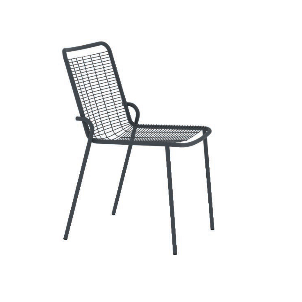 Stapelbare buitenstoel van gepoedercoat gegalvaniseerd ijzer, geverfd. Gemaakt in Italië, 4 stuks.