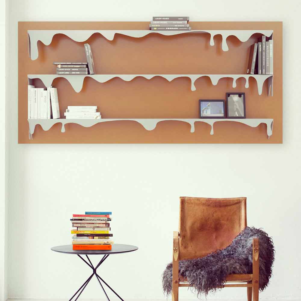 Kolata is een originele bibliotheek van geschilderde ijzeren muur, een aanvulling die het milieu levert en tegelijkertijd is zeer functioneel, dankzij de dynamische vorm van de planken die een blik op de hele pop geven.