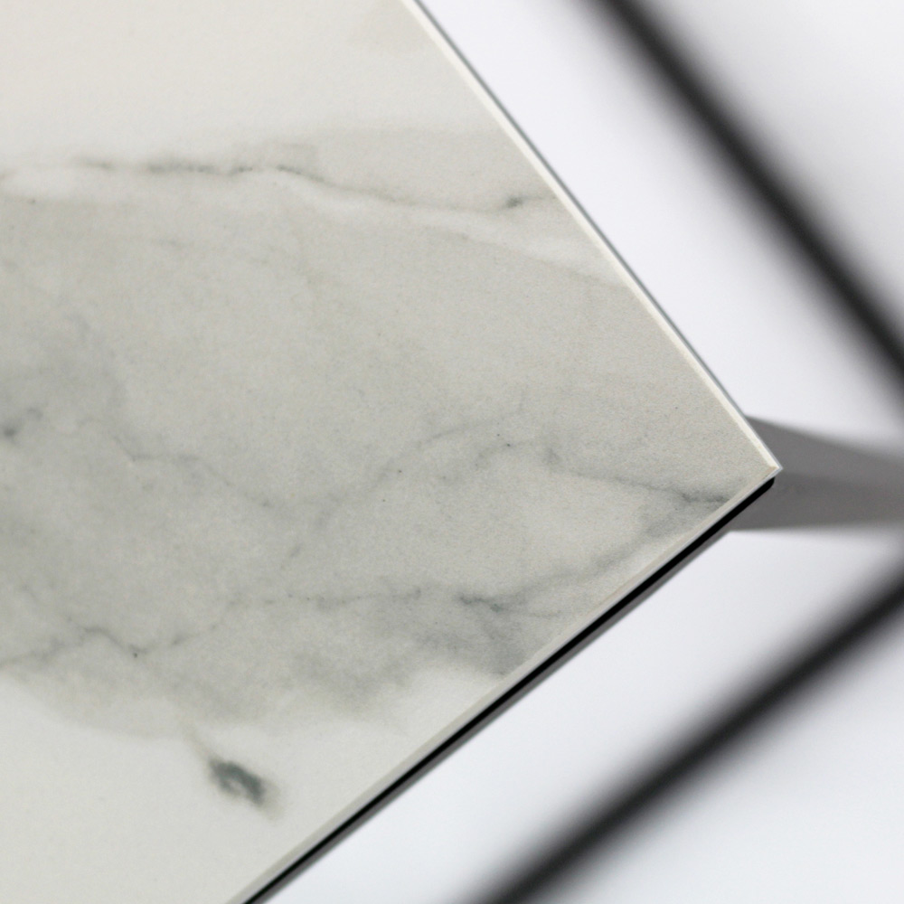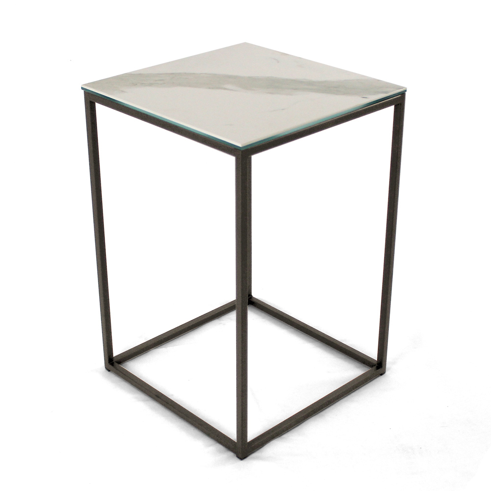 Vierkante salontafel met gelakt stalen onderstel en blad in 3 mm mat geaderd beeldhouwwerk wit steengoed gelamineerd met 6 mm floatglas. De salontafels in moderne stijl vormen het perfecte meubelstuk om de decoratie van elke woonkamer en woonkamer te voltooien. Deze producten zijn uniek, elegant en functioneel tegelijk dankzij hun eenvoudige en harmonieuze afwerkingen die ze geschikt maken voor elke behoefte en gebruiksgelegenheid. De materialen die voor de constructie zijn gebruikt, garanderen een hoge kwaliteit en weerstand, zelfs met het verstrijken van de tijd.