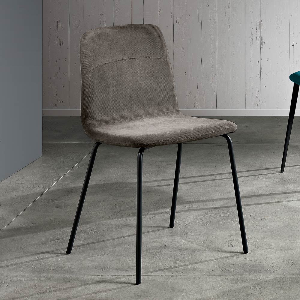 Egizia is een geweldige stoel voor de woonkamer , gerealiseerd in Italië met een buisvormige metalen voet (diameter 18) om uit de volgende kleuren te kiezen: