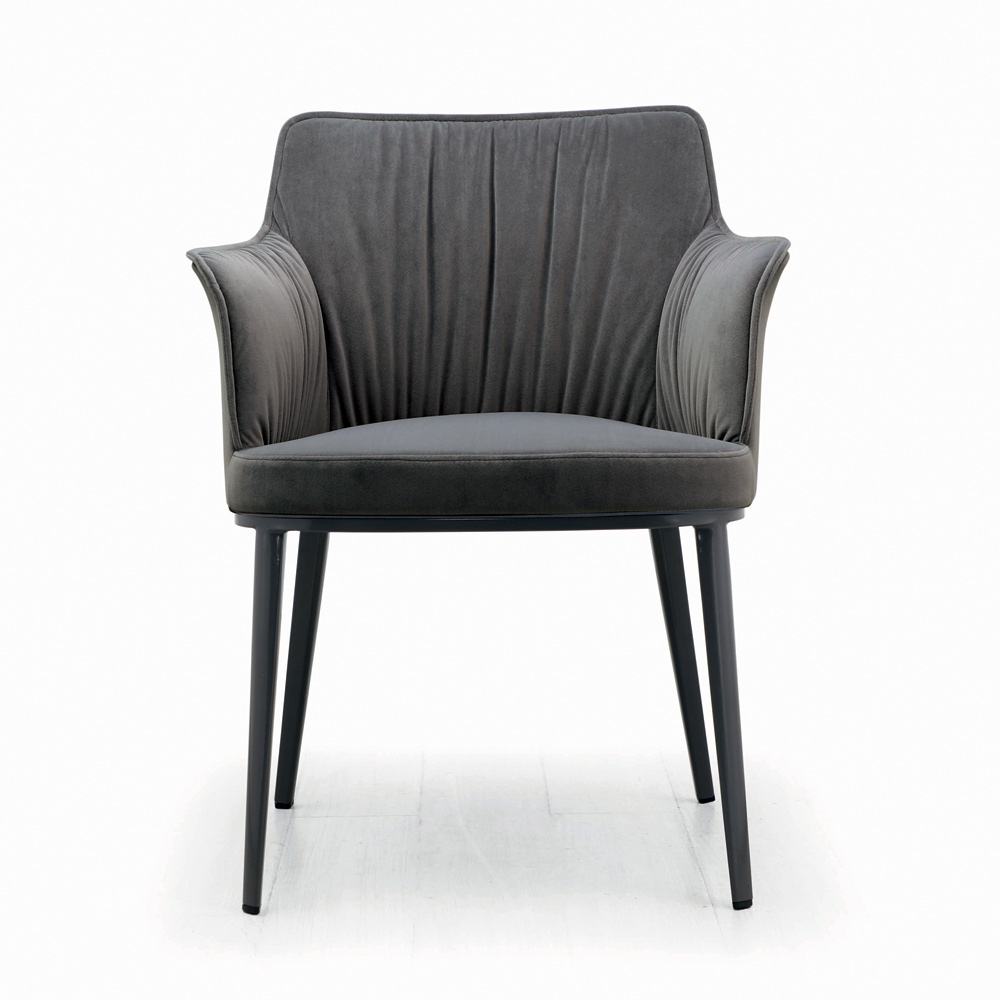 Woonkamerstoel gemaakt met stalen zitting en rugleuning volledig bekleed met stof of fluweel en gelakte stalen poten. Essentialiteit en minimalisme zijn de bijzondere kenmerken van dit meubelaccessoire met een eigentijdse stijl , ontworpen voor liefhebbers van een eenvoudige inrichting maar tegelijkertijd met een sterke visuele impact . De esthetische lichtheid die wordt gekenmerkt door de vormen is de grootste kracht ervan, waardoor het in elke context kan worden ingevoegd en er altijd uniek en origineel uitziet.