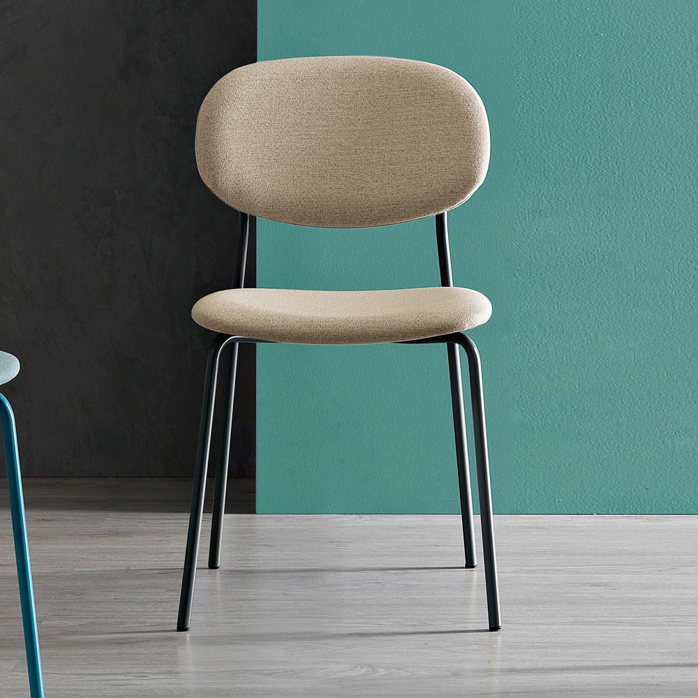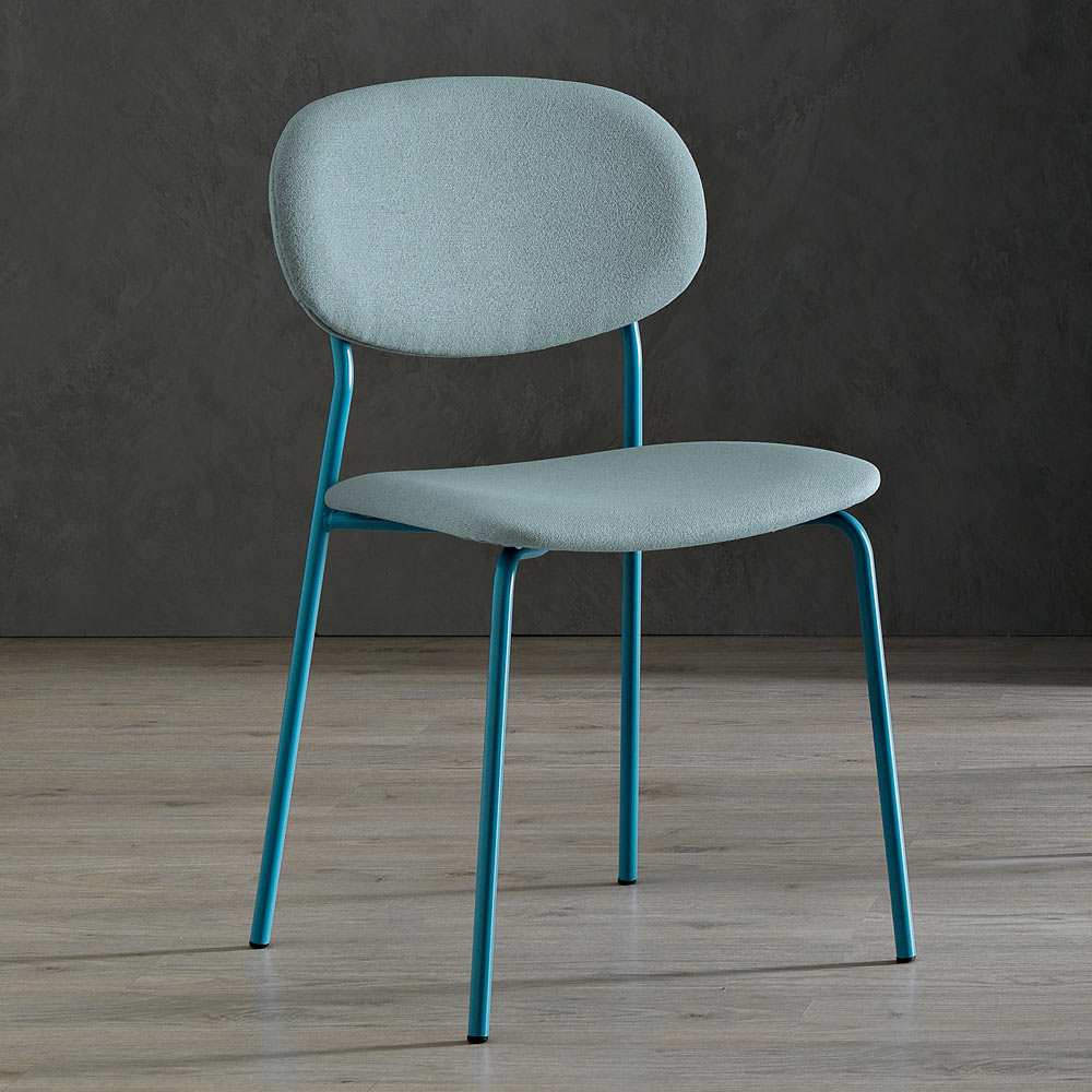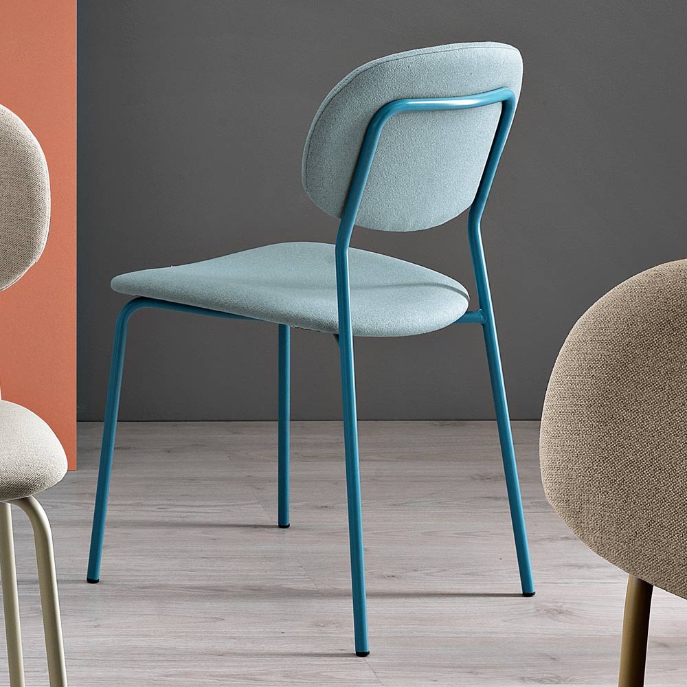Met zijn ergonomische silhouet is deze stoel de belichaming van comfort. De stevige maar elegante metalen poten ondersteunen het golvende ontwerp van de stoel en bieden stabiliteit zonder afbreuk te doen aan de esthetiek. Het contrast tussen de gedurfde kleuren van de stoelen en de dunne structuren is een bewuste keuze die de veelzijdigheid van het ontwerp vergroot en aanpasbaar is aan een groot aantal interieuromgevingen.