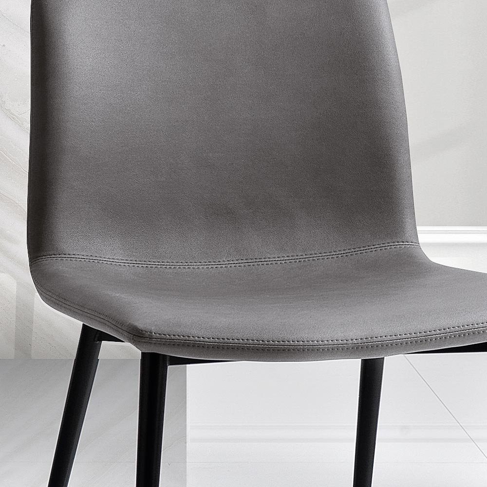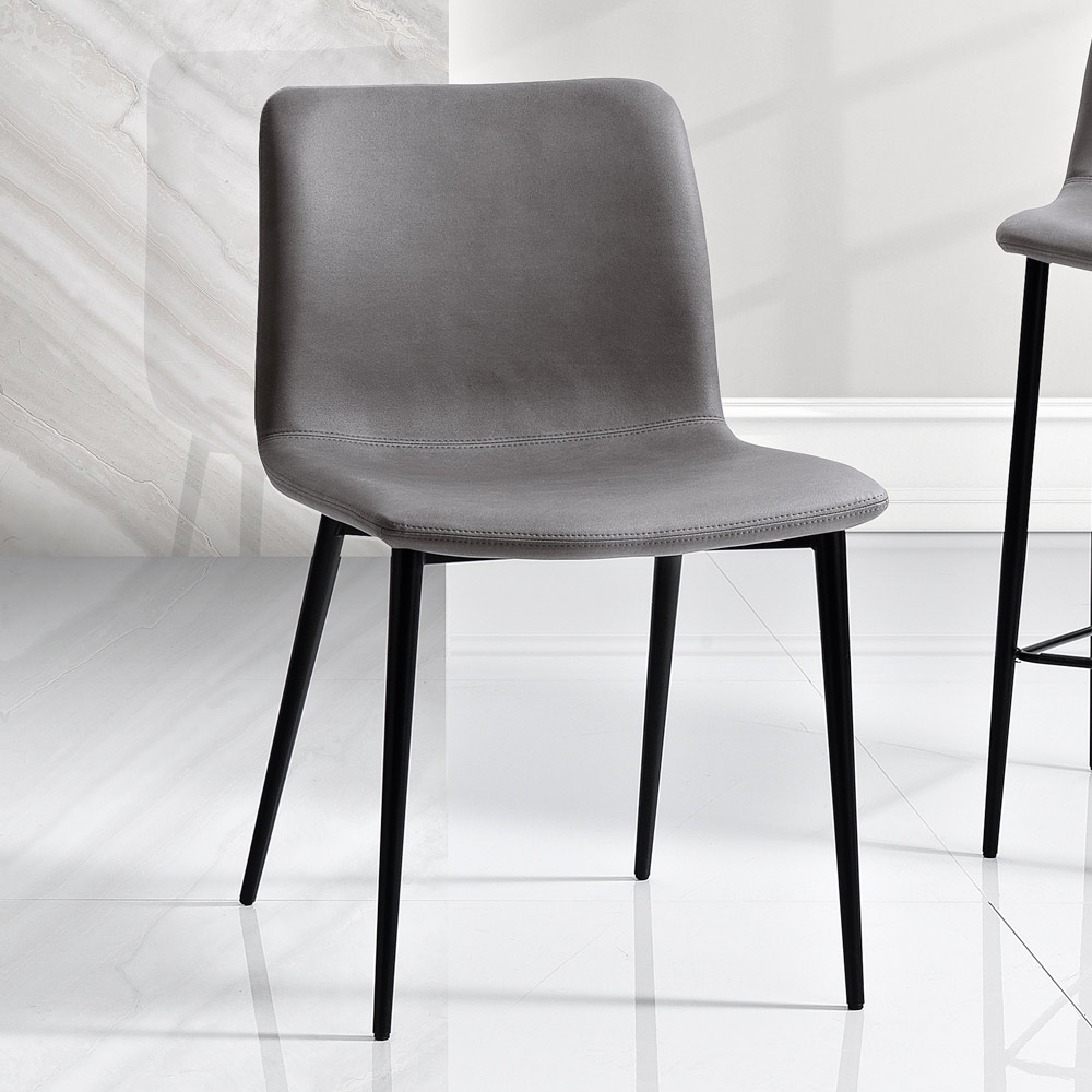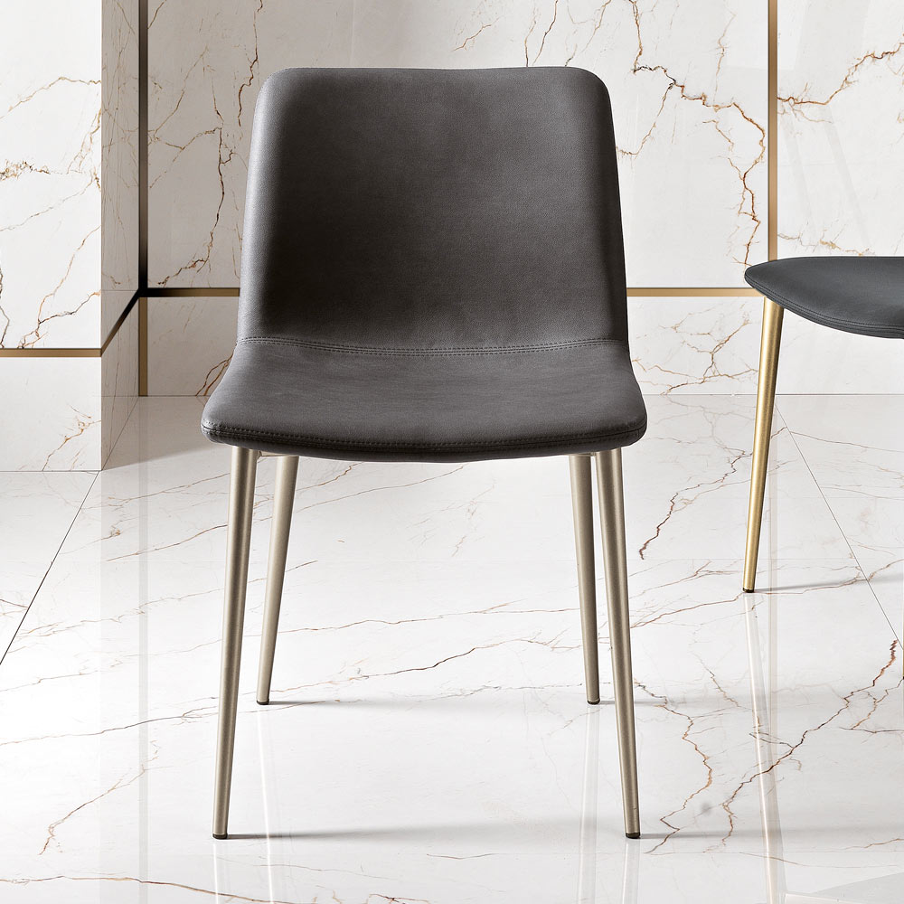 De zachte vulling en de doordachte ergonomie beloven comfort voor lange sessies, of het nu een etentje met vrienden is of een dag op het werk. De metalen poten zijn dun maar sterk, waardoor de stoel een solide en duurzaam onderstel heeft, terwijl hun minimale ontwerp bijdraagt aan een sfeer van verfijnde eenvoud.