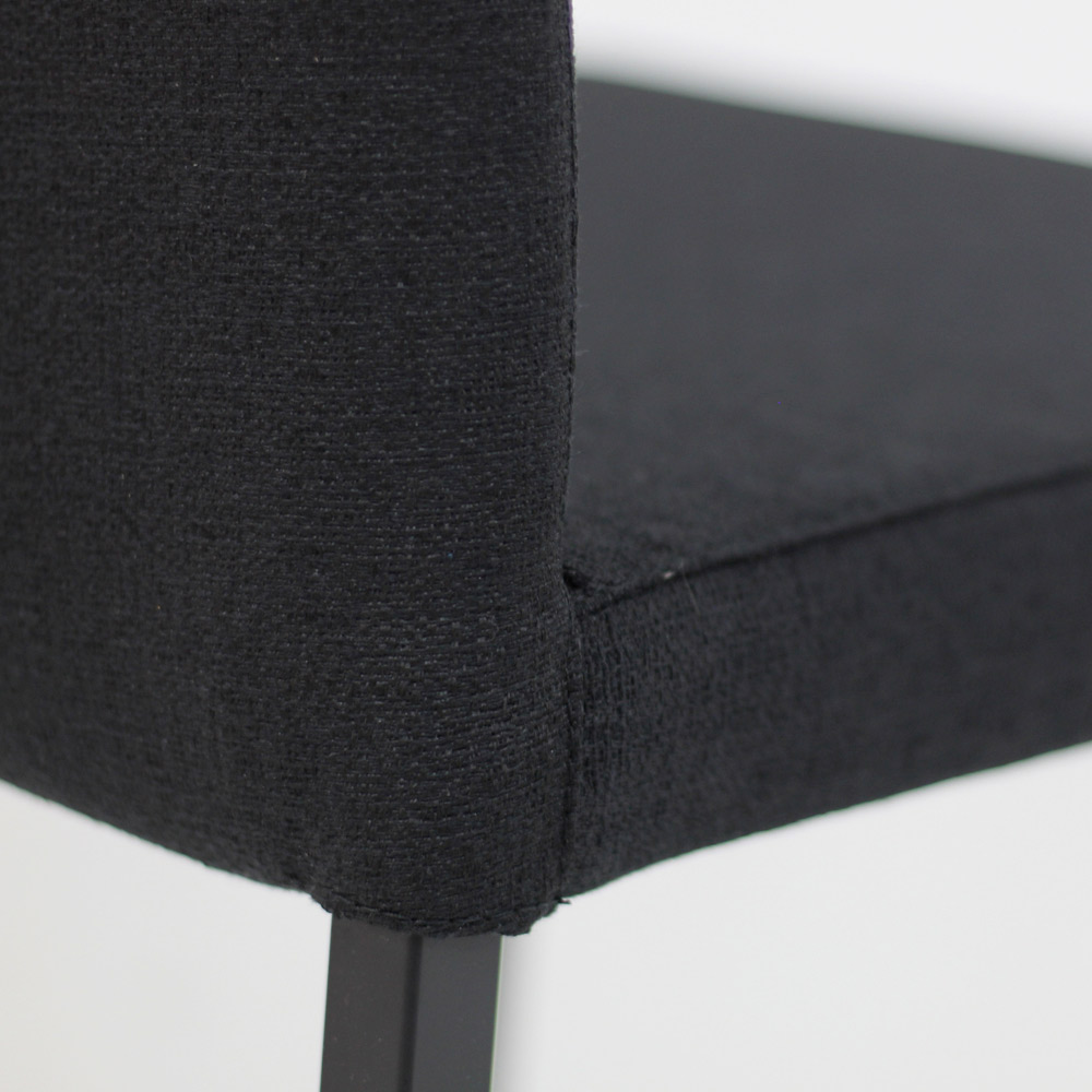 gemaakt in Italië met hoge rugleuning, zwart gelakte poten en zitting in zwarte structuurstof perfect voor thuis en geschikt voor gebruik. Deze inrichtingsset is een perfect idee voor iedereen die de kamer een speciaal en modern tintje wil geven, zonder de