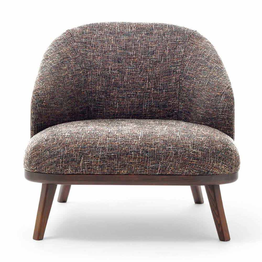 Woonkamer fauteuil in stof met houten onderstel Made in Italy, luxe.