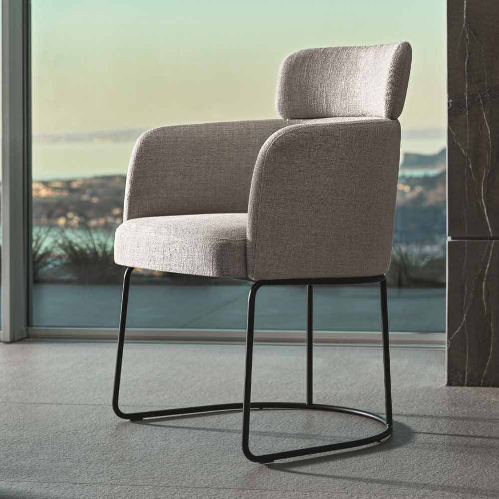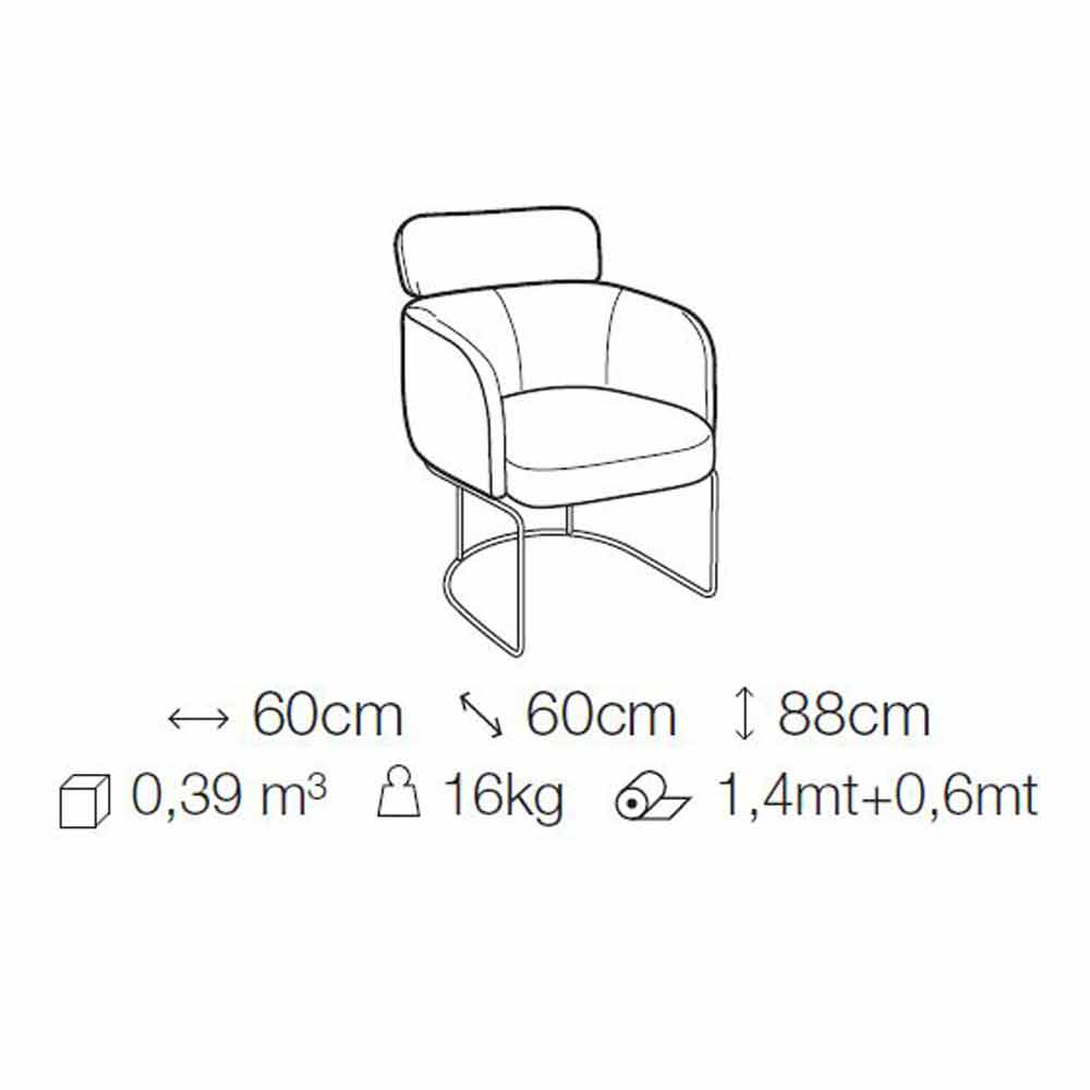 Stoel bekleed met stof met hoogwaardige metalen onderstel Made in Italy.
