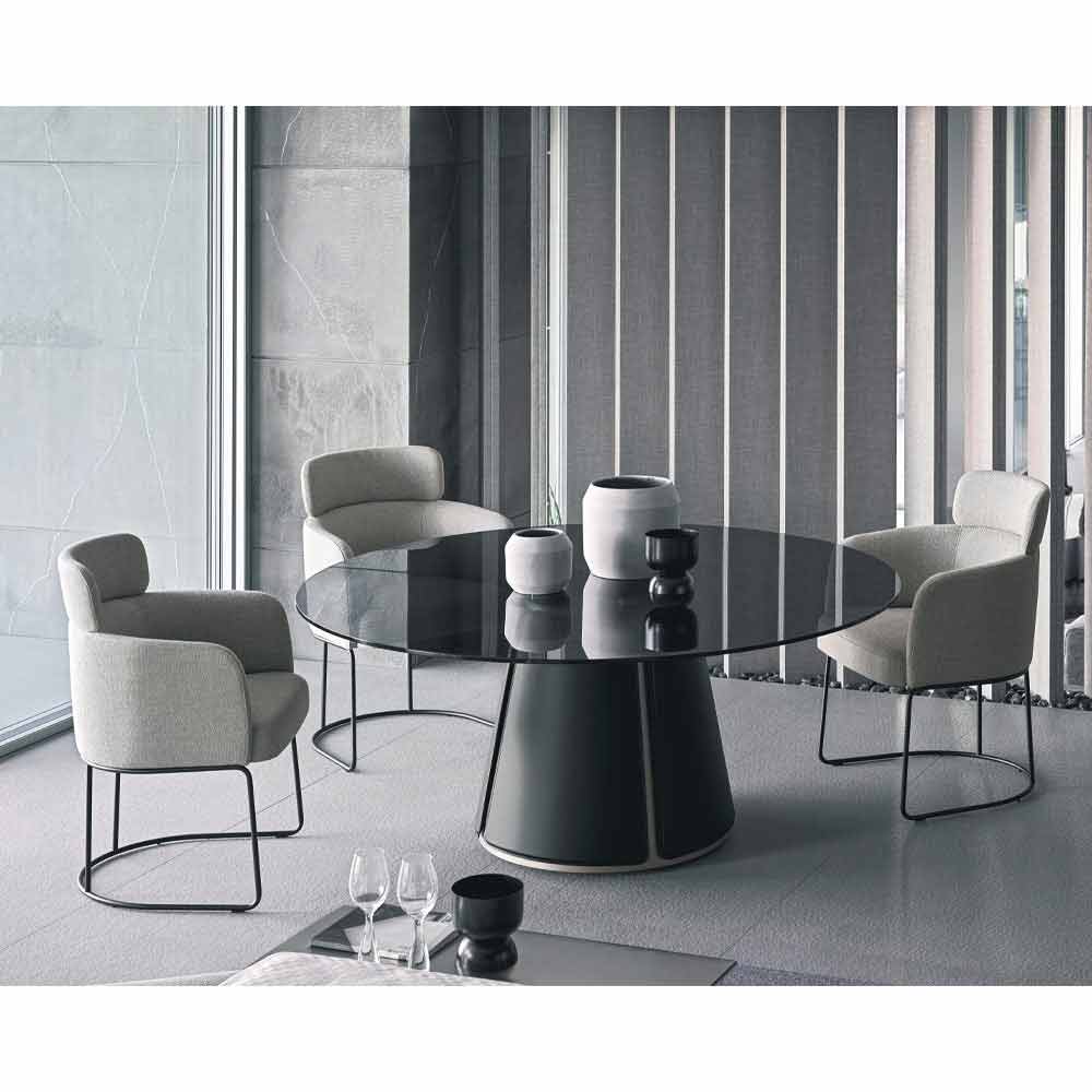 stof (niet verwijderbaar). Zachte en omhullende vormen brengen een bijzonder moderne en exclusieve inrichtingsoplossing tot leven. Dankzij de gebogen vorm herschept het lichaam het gevoel van een echte knuffel, waardoor het leven schenkt aan een klein nest om in de watten te leggen en te ontspannen om heerlijke momenten door te brengen tijdens lunches en diners met vrienden.