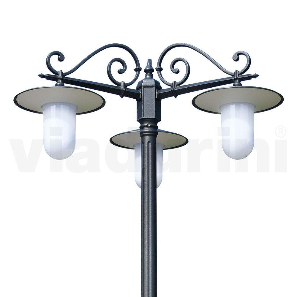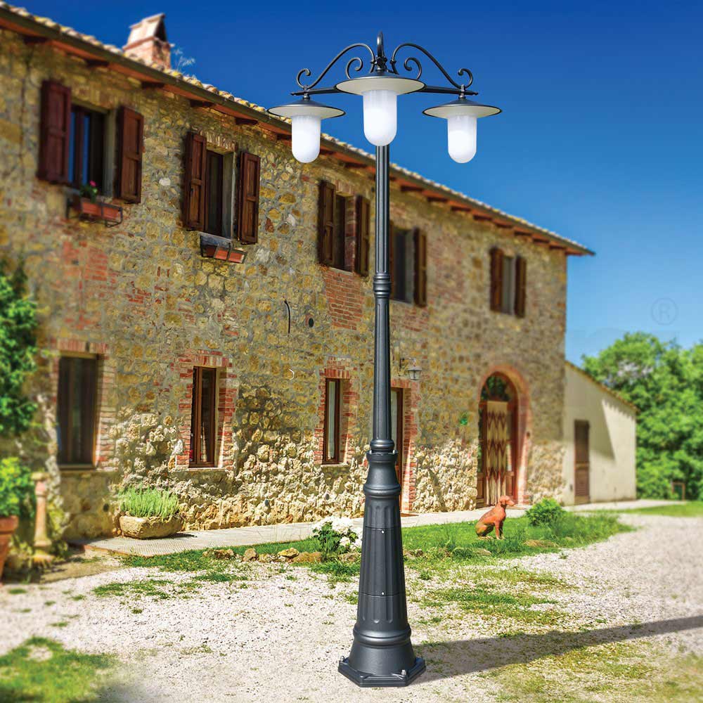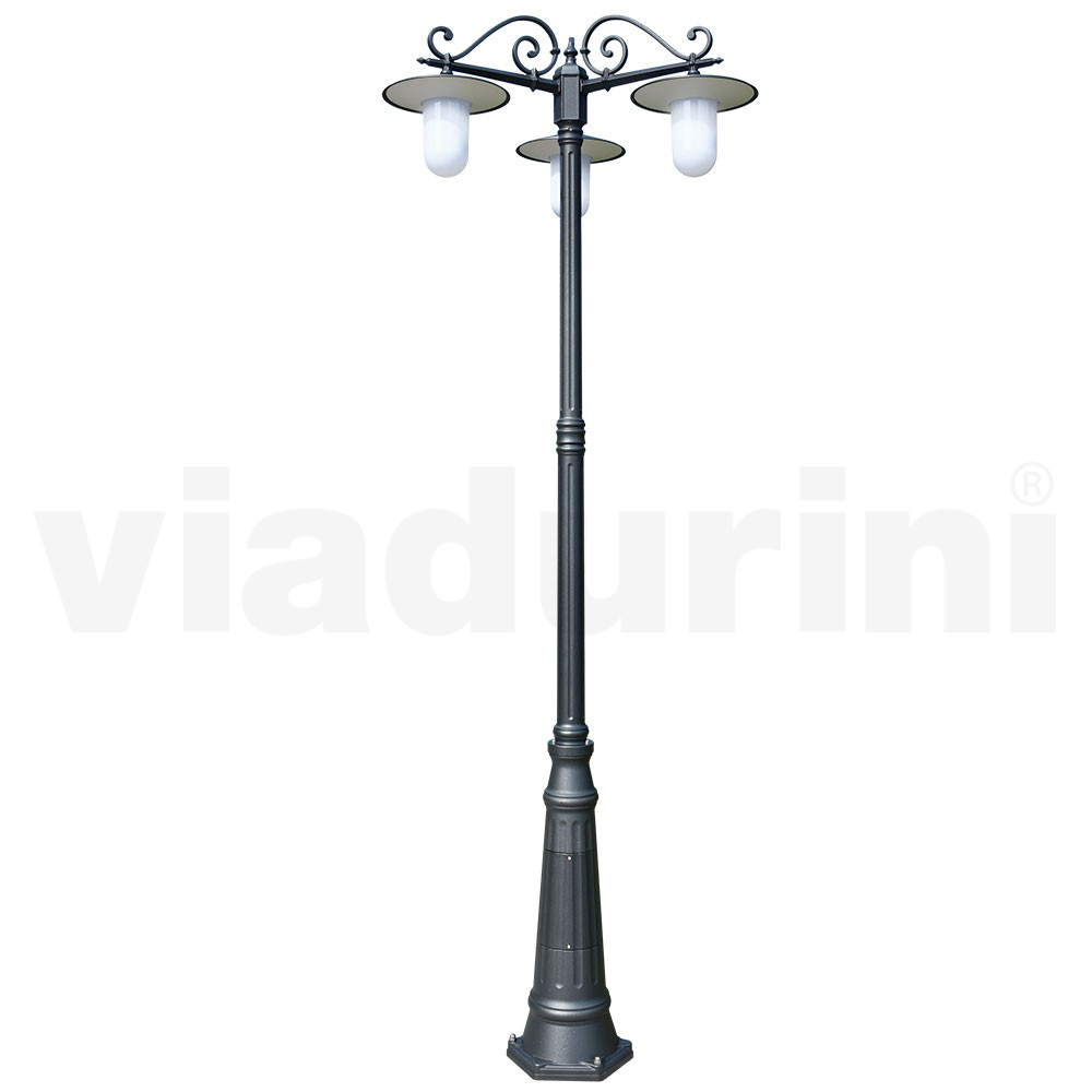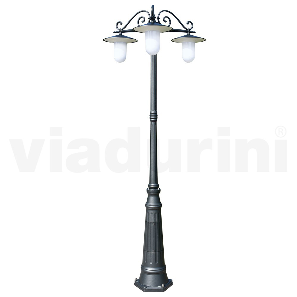 Vintage 3-lichts straatlamp met grijze aluminium structuur Made in Italy.