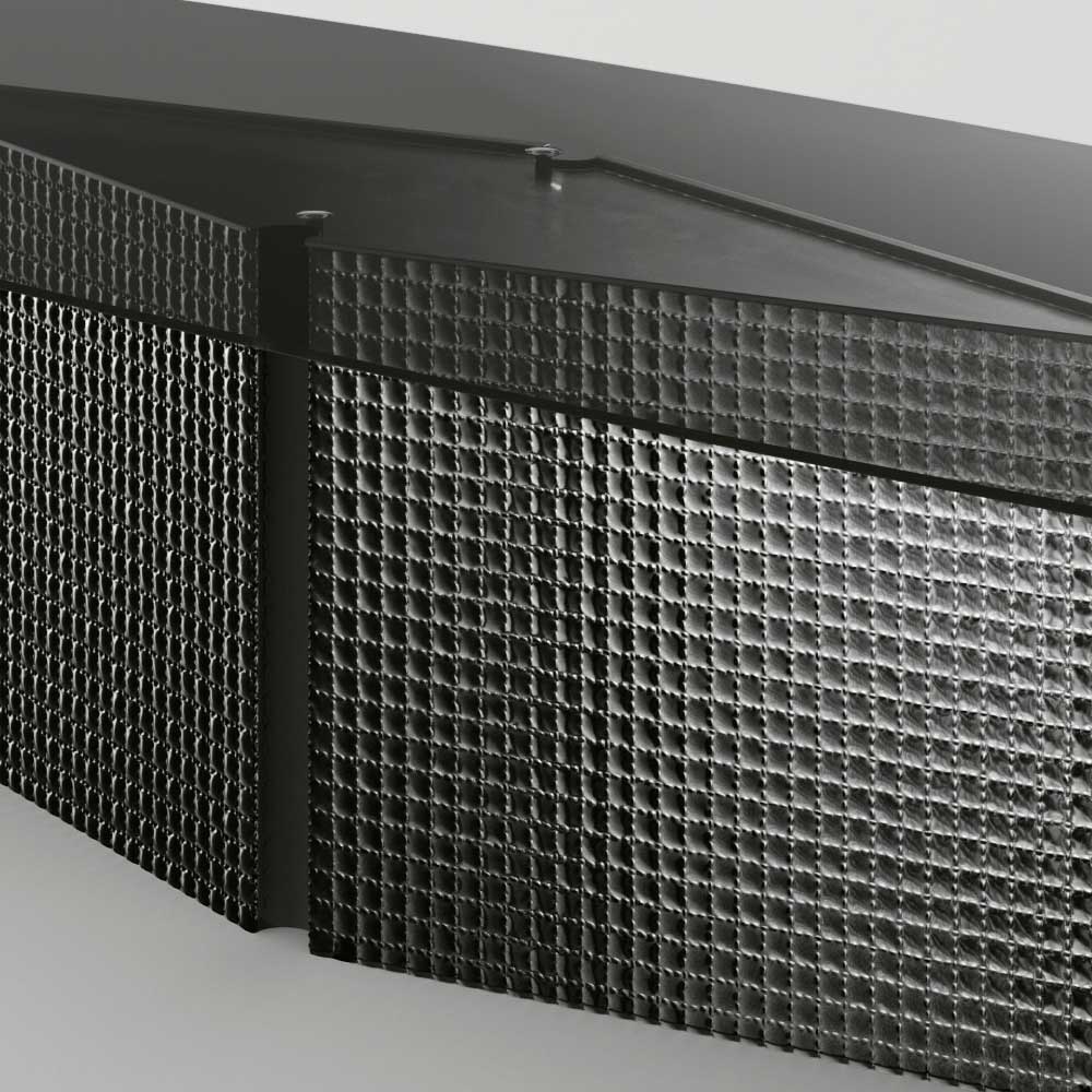metalen structurele elementen van de basis hebben een matzwarte afwerking. De in hoogte