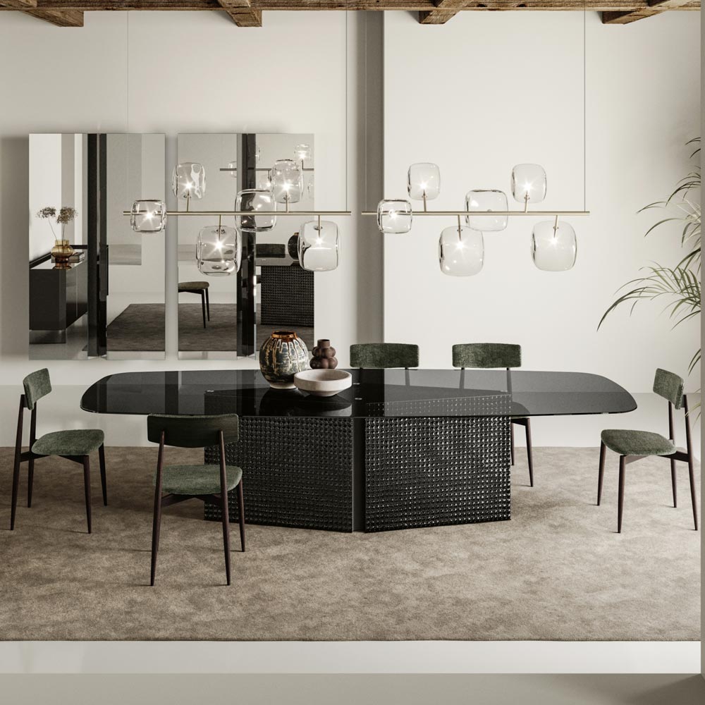 Deze tafel is geschikt voor moderne, minimalistische omgevingen en ideaal voor mensen die een stijlstatement willen maken in hun woonruimtes. Deze tafel is perfect voor het hosten van elegante diners of als gesprekscentrum in een kantoorruimte en combineert de schoonheid van modern design met de functionaliteit die nodig is voor het dagelijks leven.