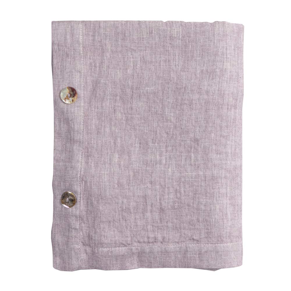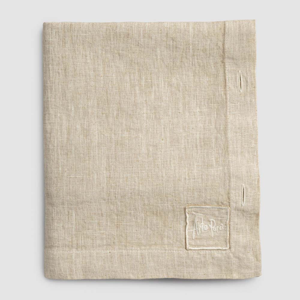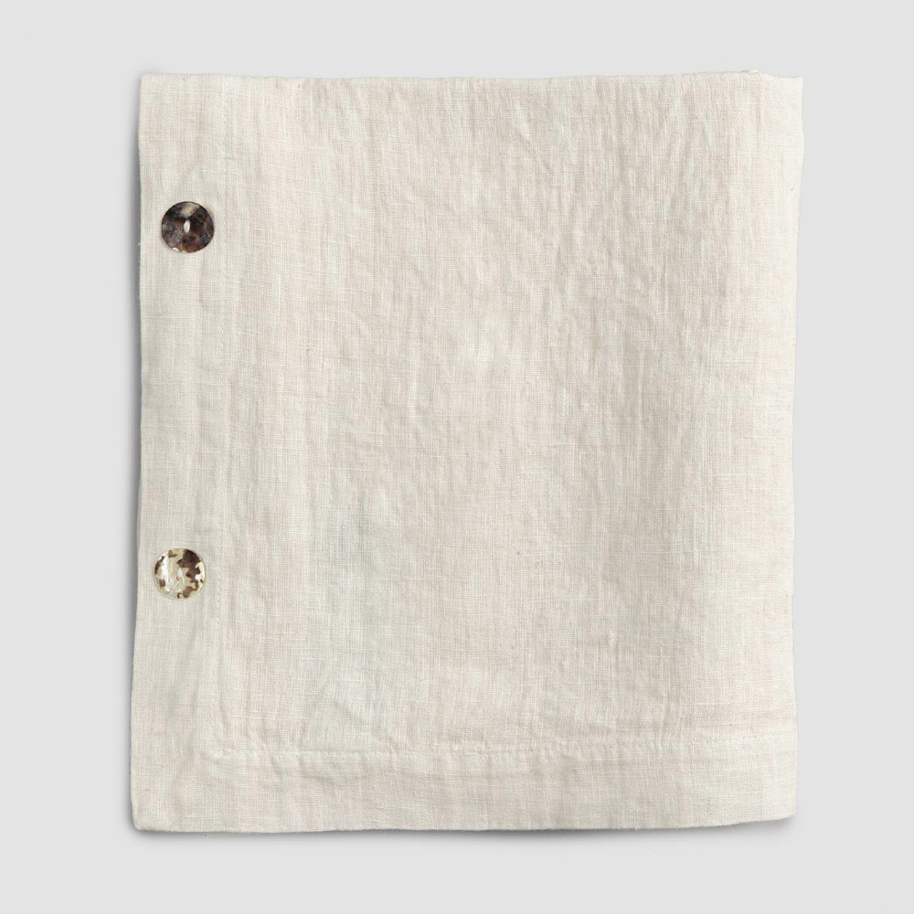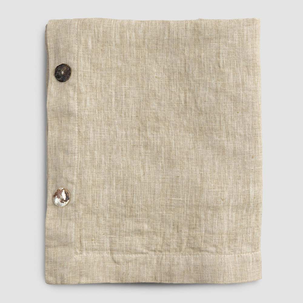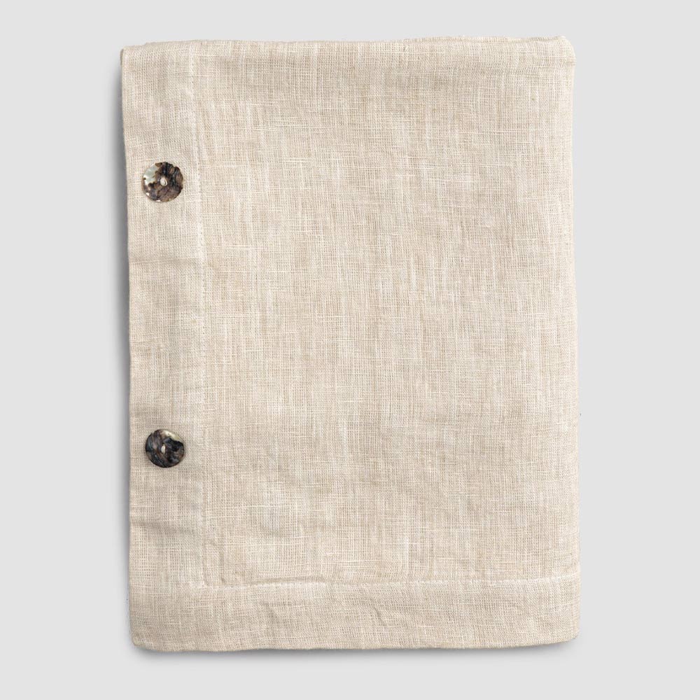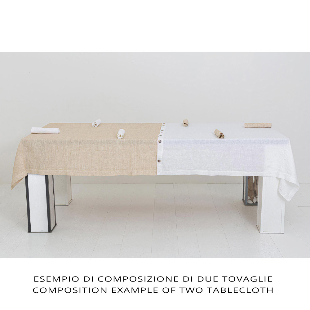 Modulair linnen tafelkleed met parelmoeren knopen, handgemaakte kwaliteit gemaakt in Italië.