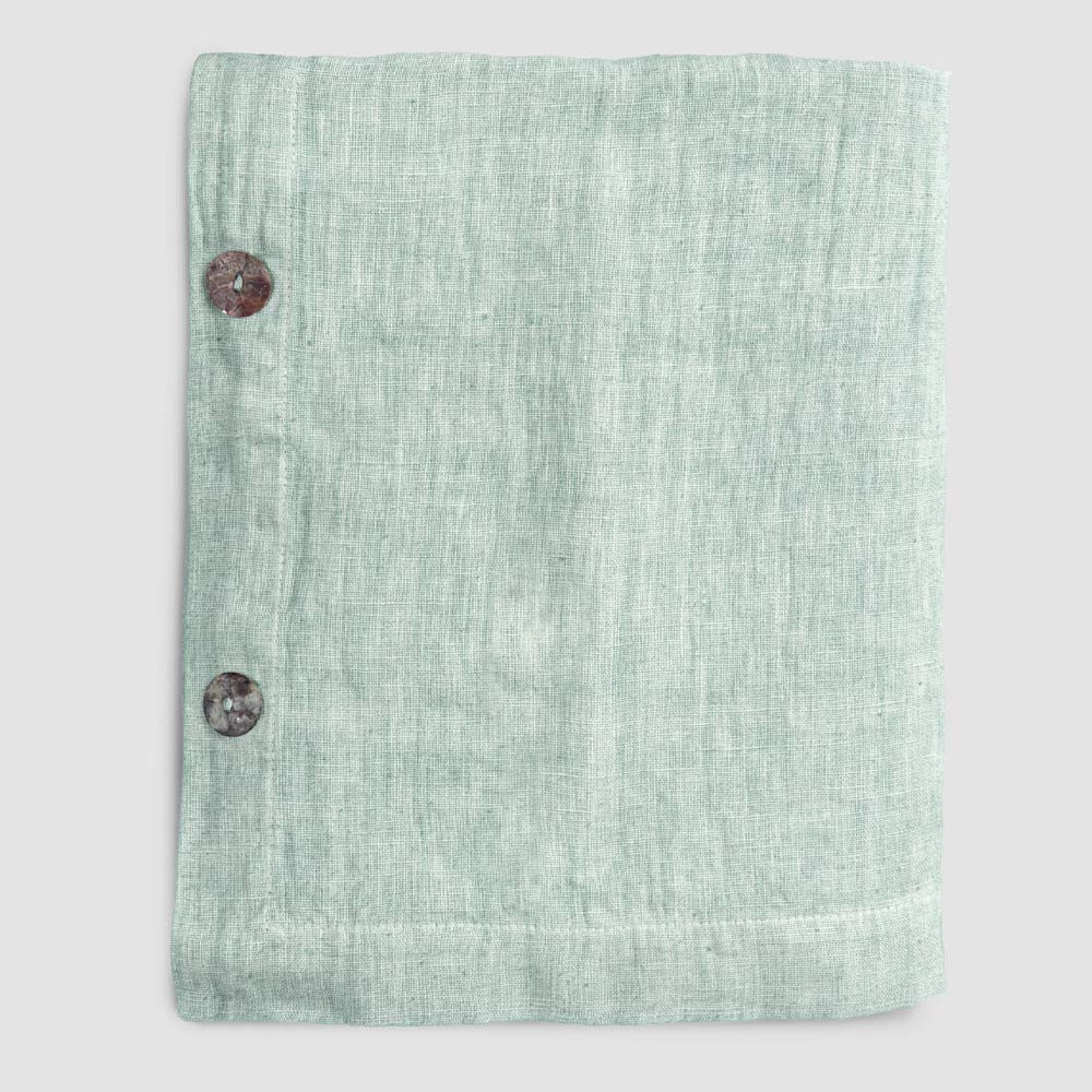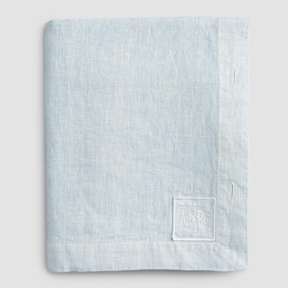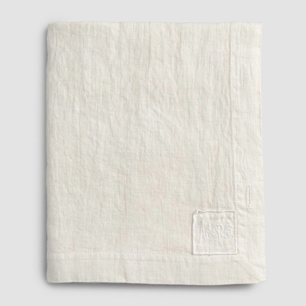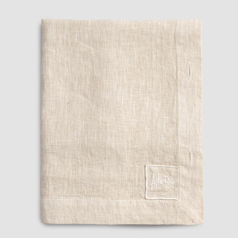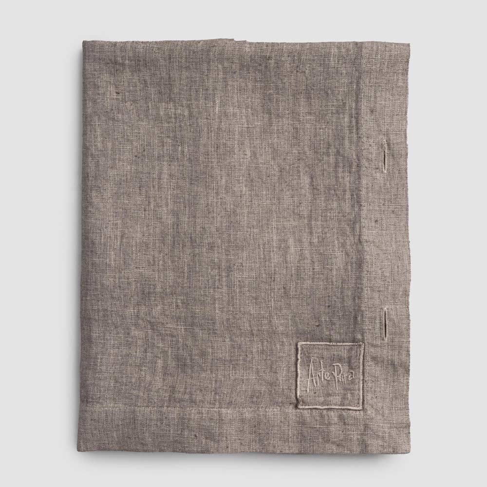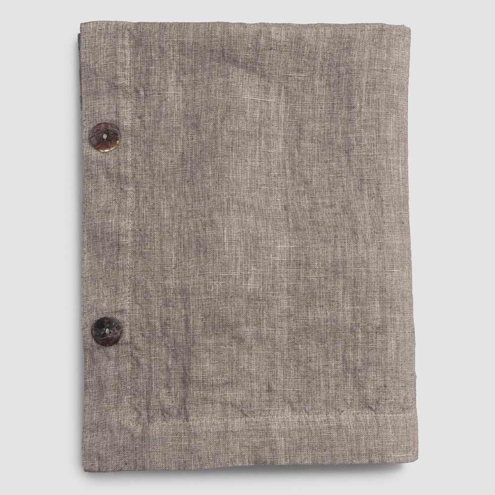 Modulair linnen tafelkleed met parelmoeren knopen, handgemaakte kwaliteit gemaakt in Italië.