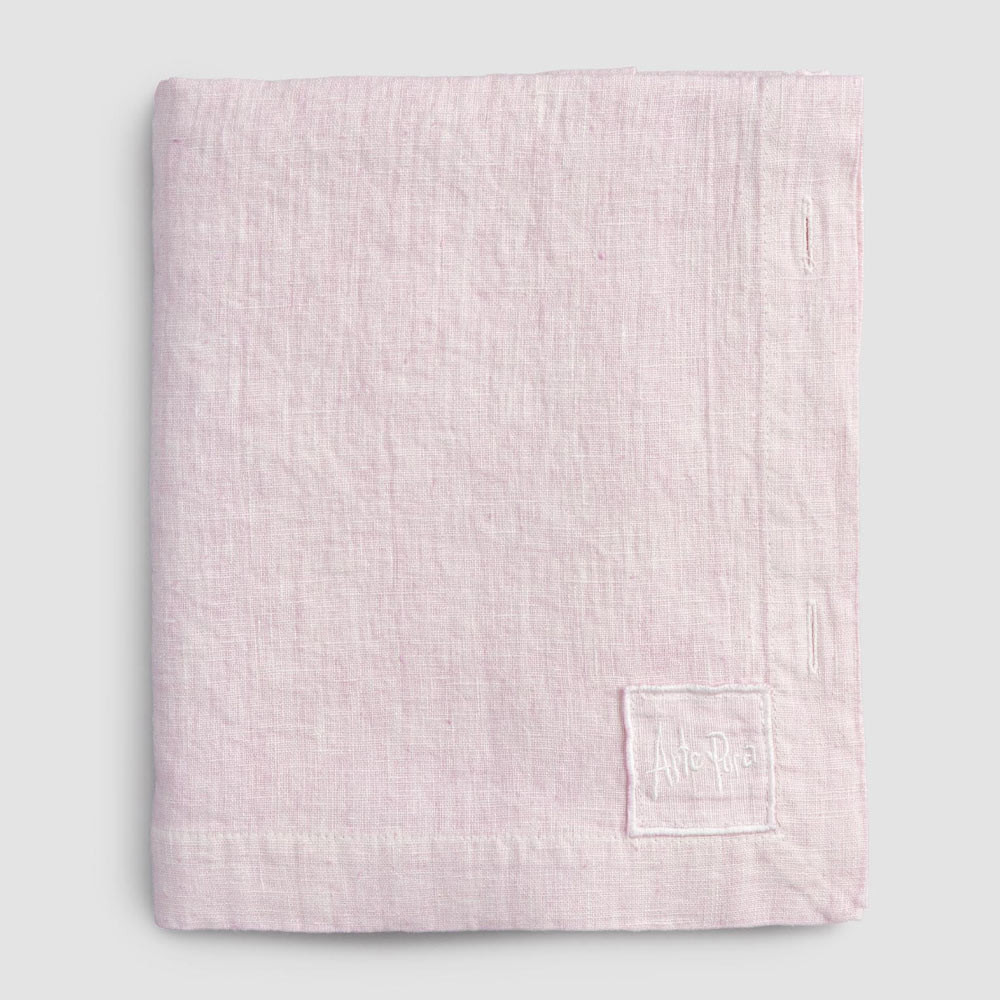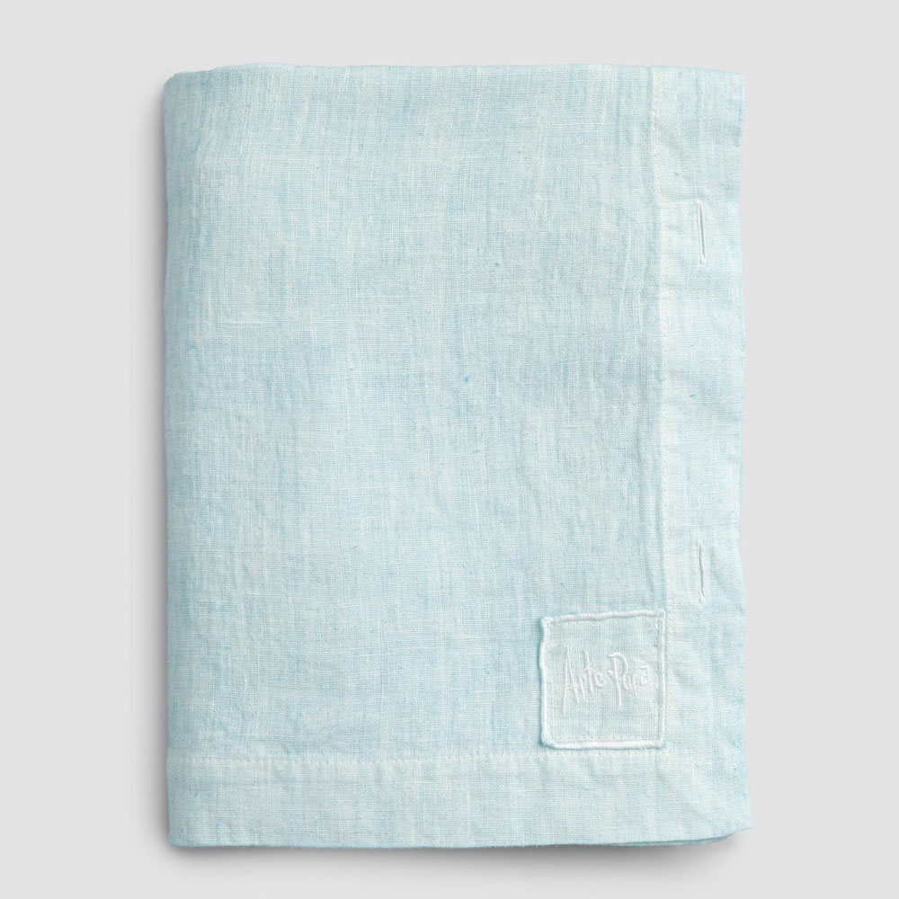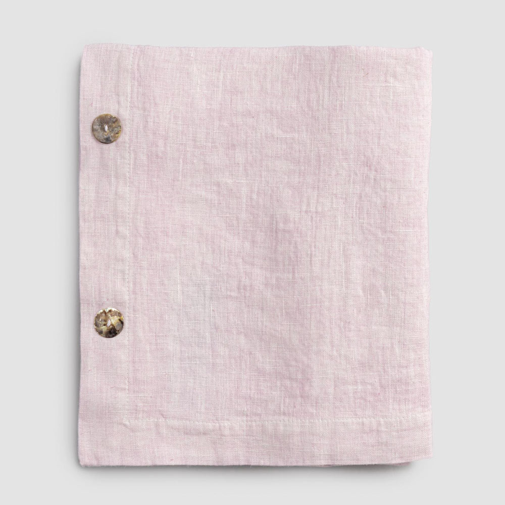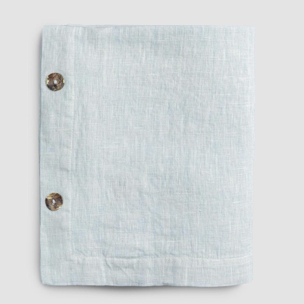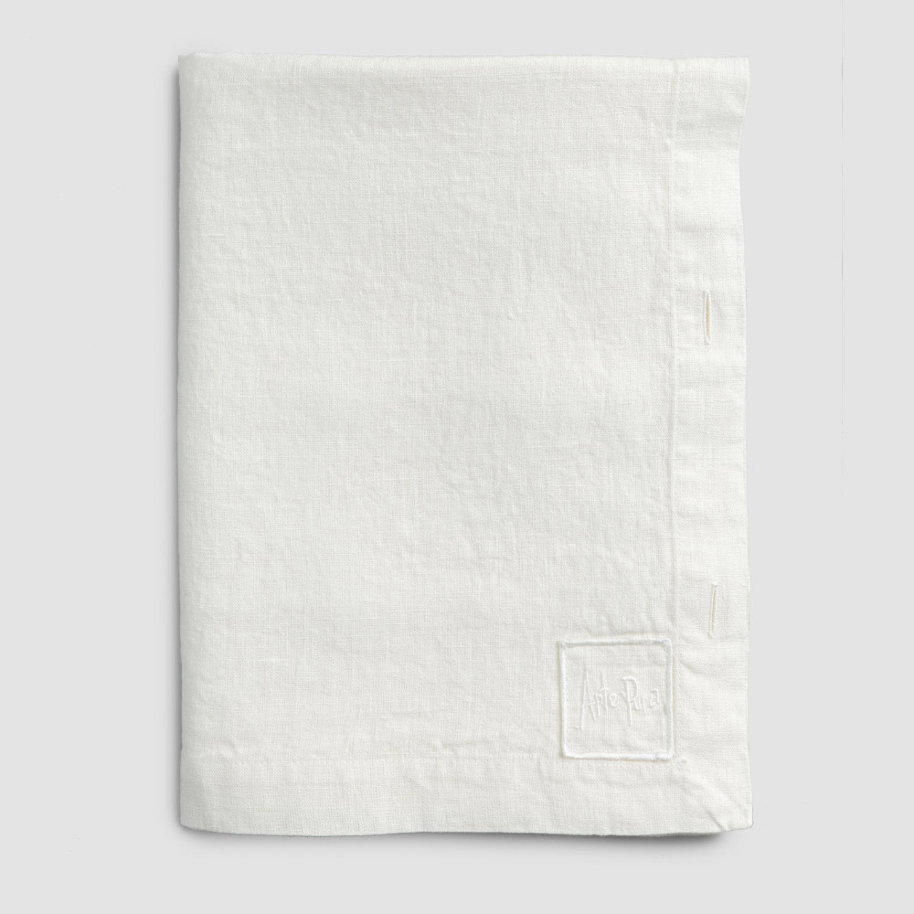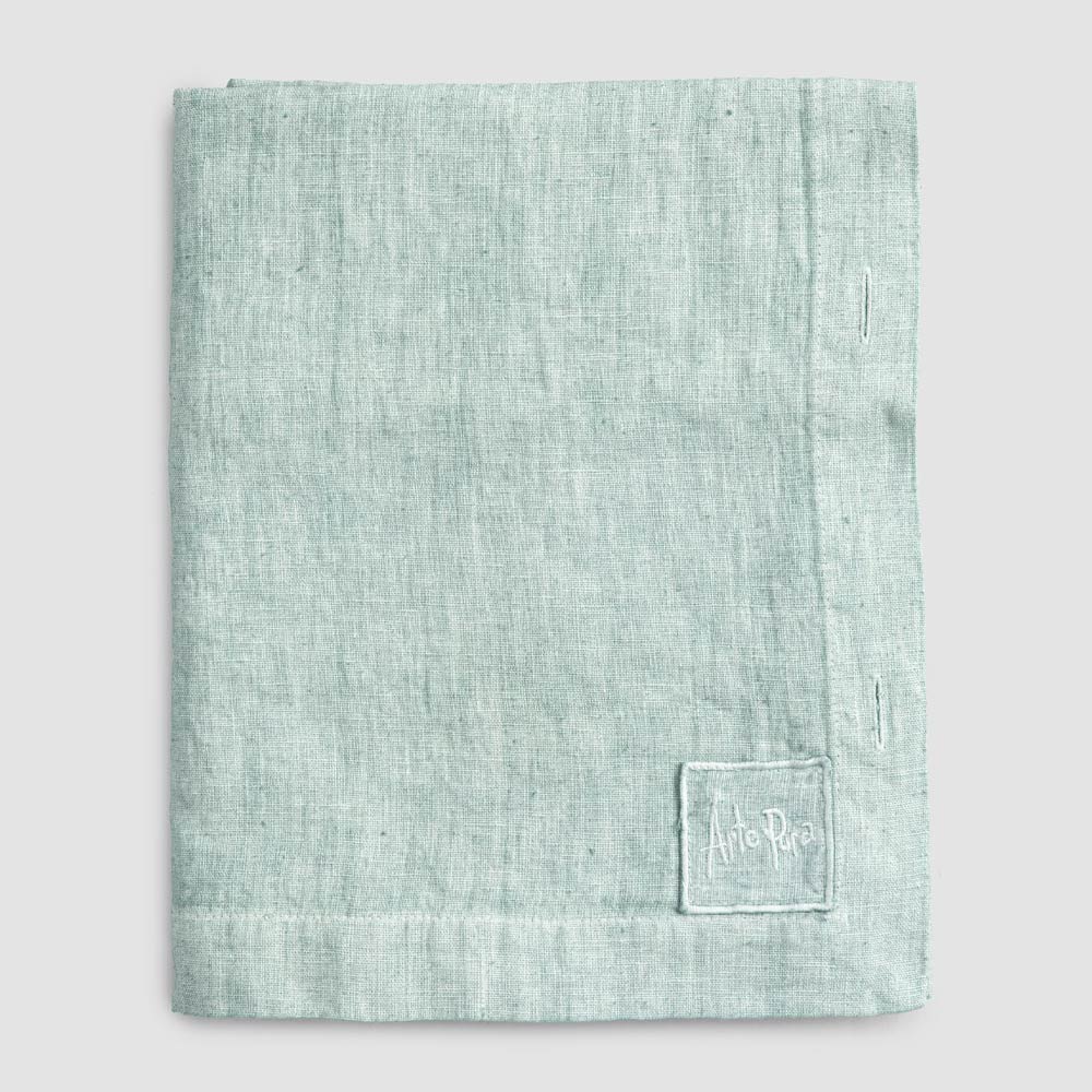 Modulair linnen tafelkleed met parelmoeren knopen, handgemaakte kwaliteit gemaakt in Italië.