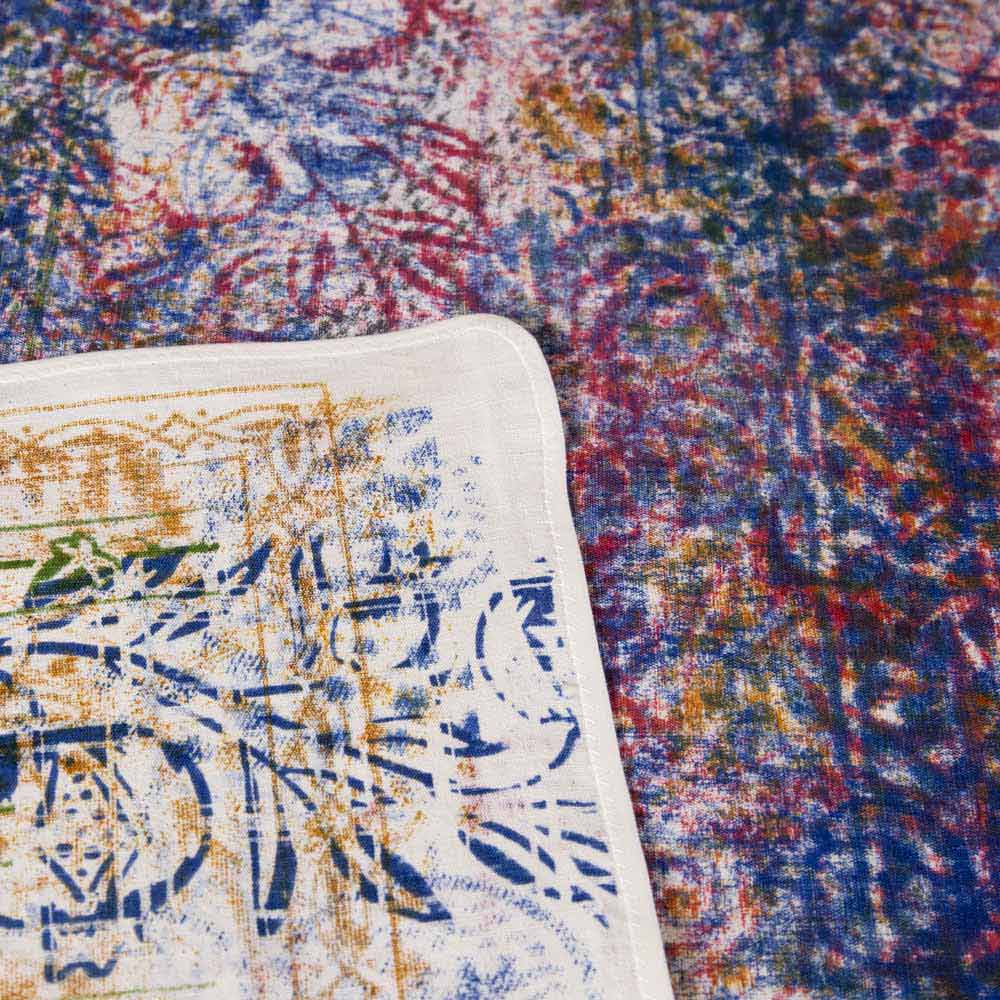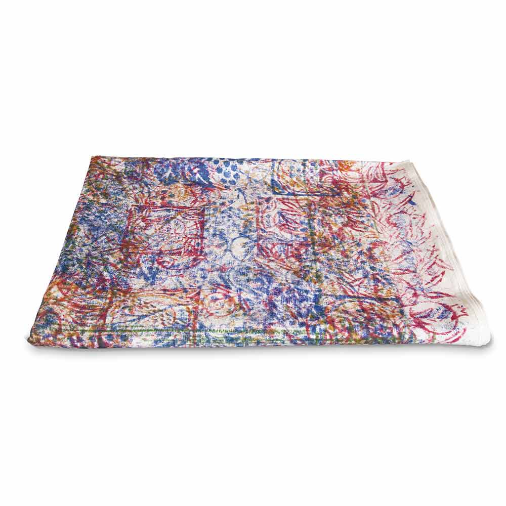 Multifunctioneel tafelkleed (sprei, bankhoes, tafelkleed) rechthoekig katoenen enkel stuk van groot formaat met gekleurde handgedrukte motieven gemaakt in Italië.