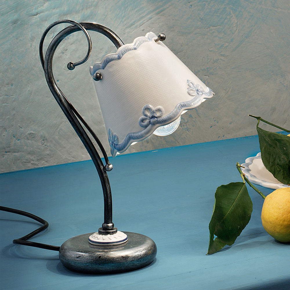 Handgemaakte steunlamp van metaal en keramiek met borduureffect gemaakt in Italië door Ferroluce.