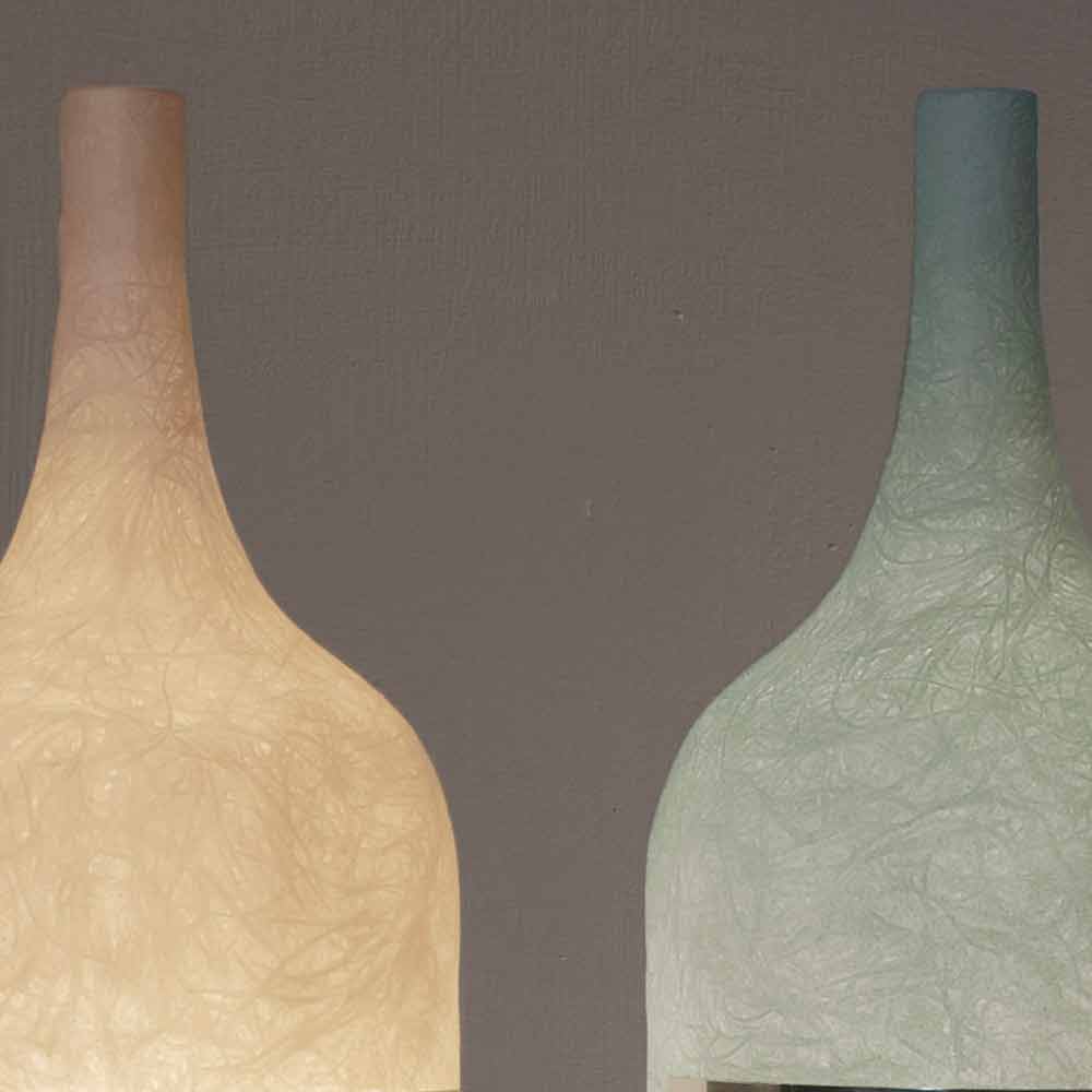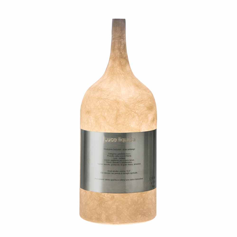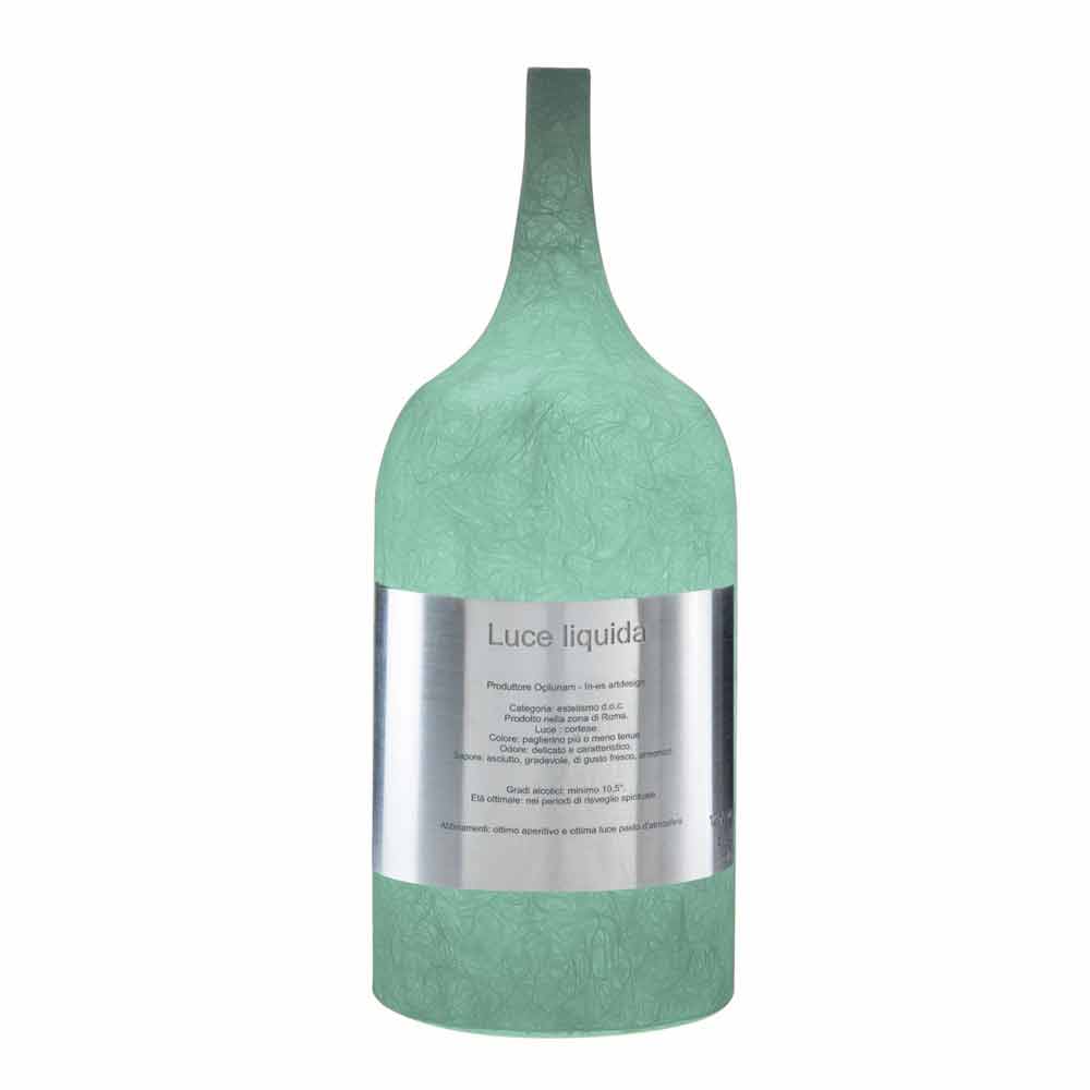 De Luce Liquid 1-tafellamp staat bekend om de schoonheid van het slanke licht dat in de fles zit.