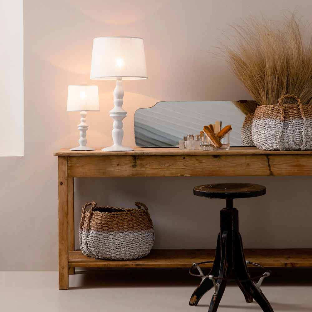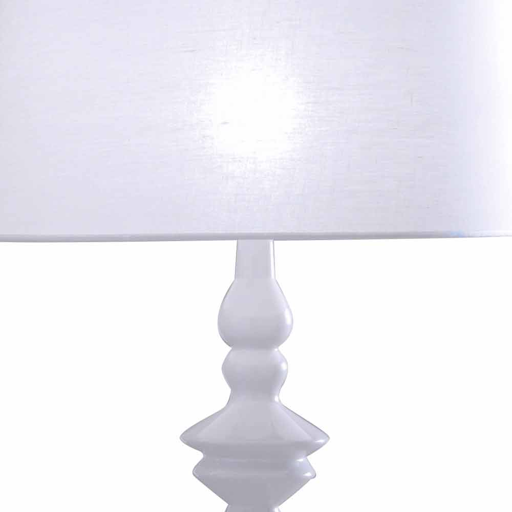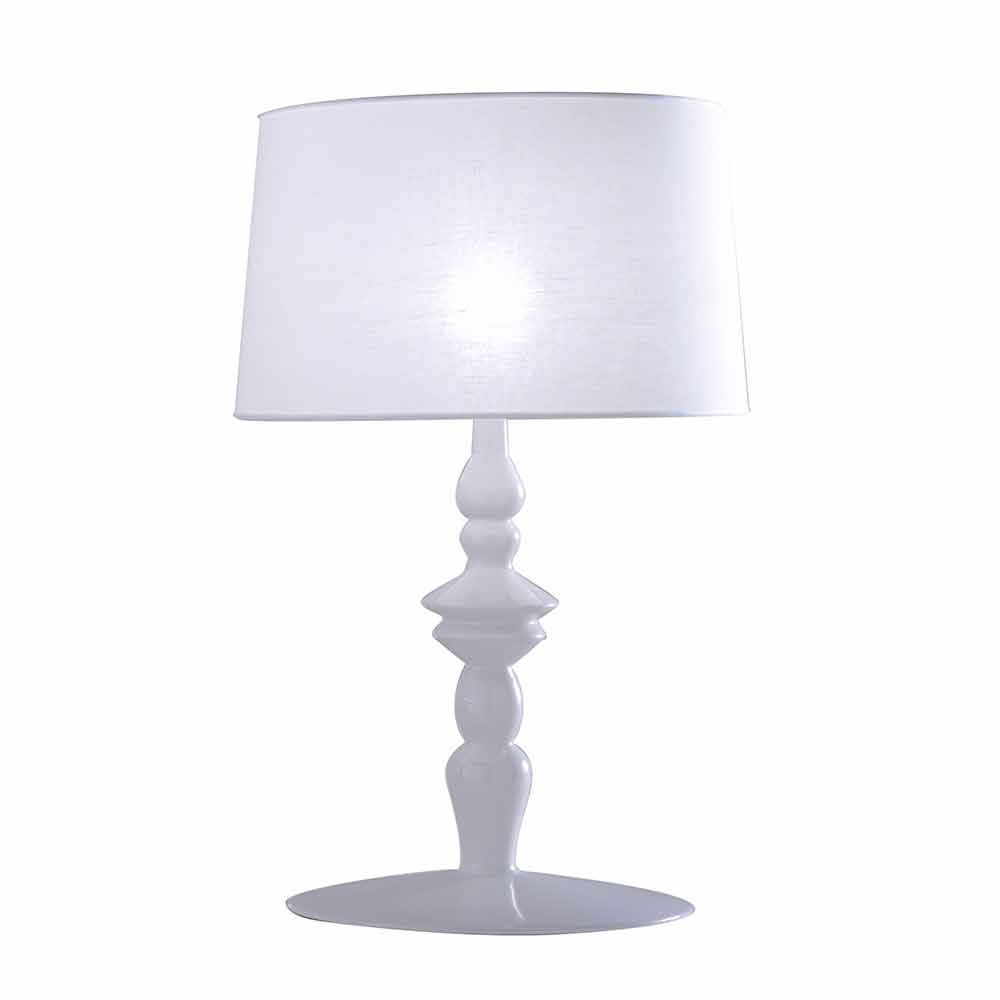 De lamp is gemaakt van glanzend wit keramiek als materiaal dat de oorsprong, de maakbaarheid, de creatie vertegenwoordigt en dat direct leidt naar de oorsprong van onze cultuur. Lampenkap in wit linnen.