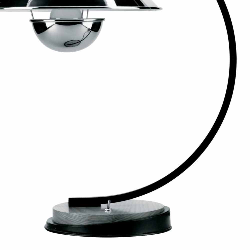 Tafellamp in eiken en metaal met verchroomde diffuser Made in Italy.