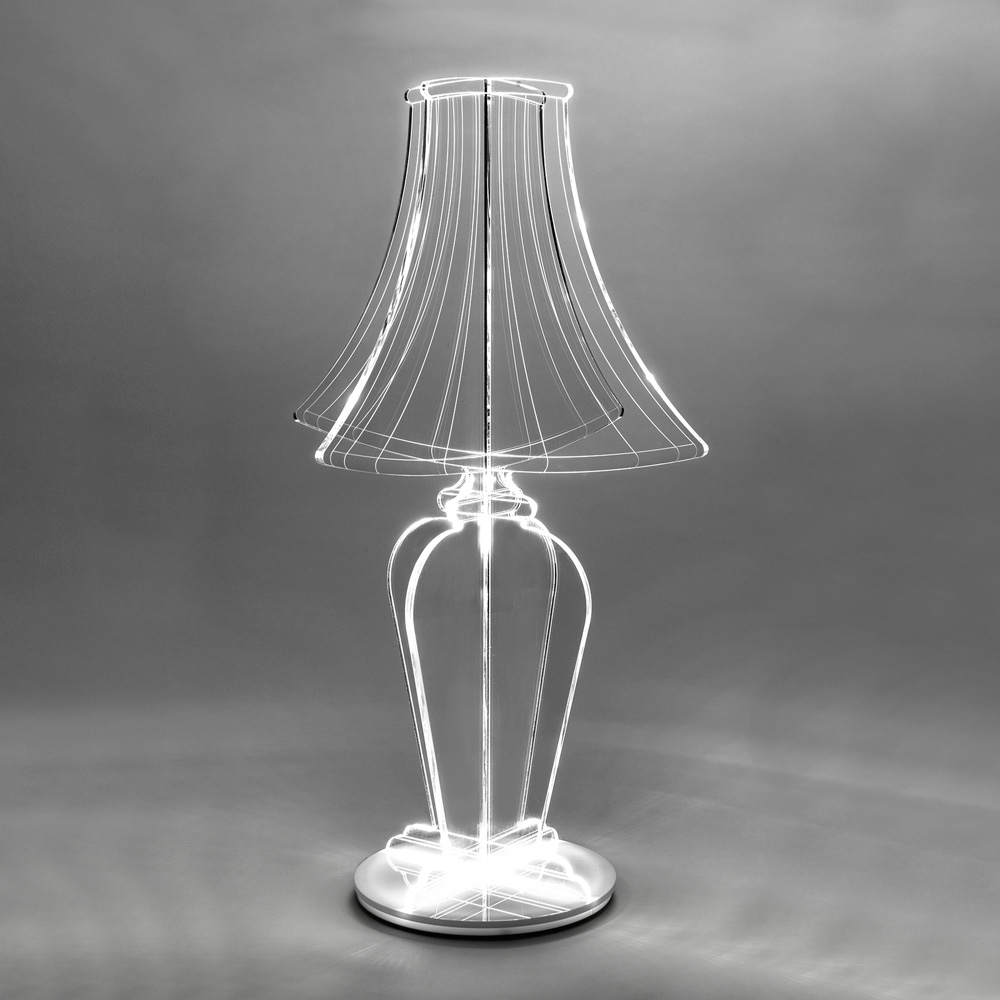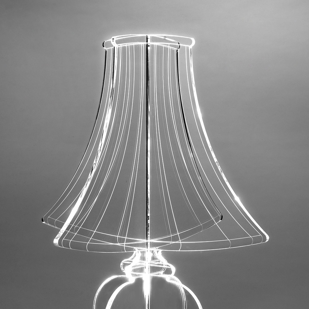 Laat u betoveren door deze lamp, een waar designjuweel dat technologische innovatie combineert met pure esthetische schoonheid . Deze lamp is een sculptuur van licht. Het 100% PMMA-plexiglas, geselecteerd uit nieuwe polymeren, is zorgvuldig vervaardigd met de precisie van lasersnijden, waardoor een silhouet ontstaat dat oplicht en tot leven komt zodra de lamp oplicht.