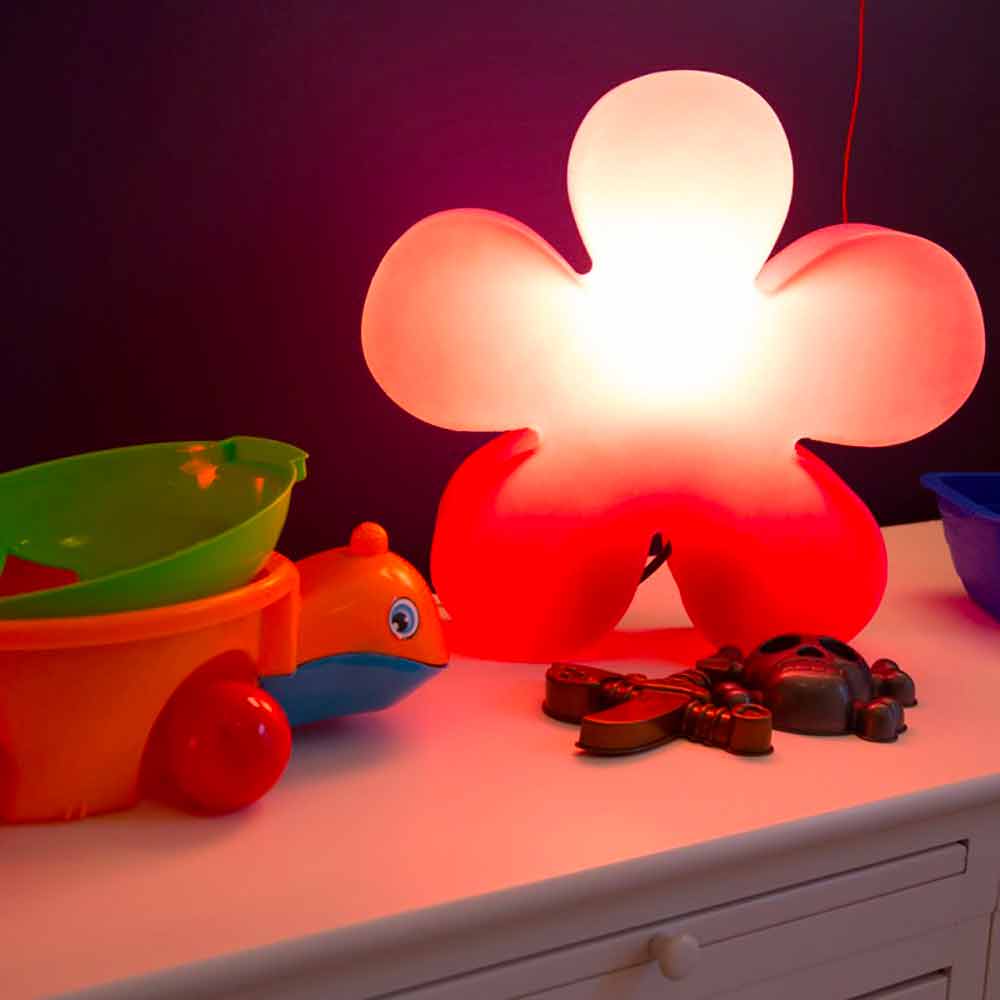 Vloerlamp in twee maten en verschillende kleuren in de vorm van een bloem voor binnen of buiten.