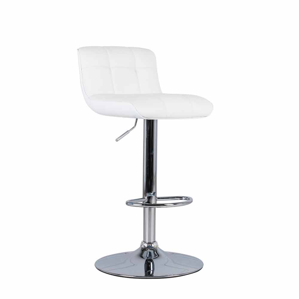 Krukken met verchroomd metalen onderstel en gecapitonneerde zitting van pvc. Verkrijgbaar in de volgende kleuren: wit, grijs, rood, duifgrijs.