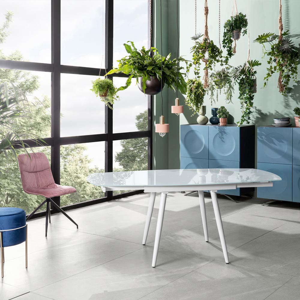 Eettafel met uitschuifbaar glazen blad Made in Italy - Antimo