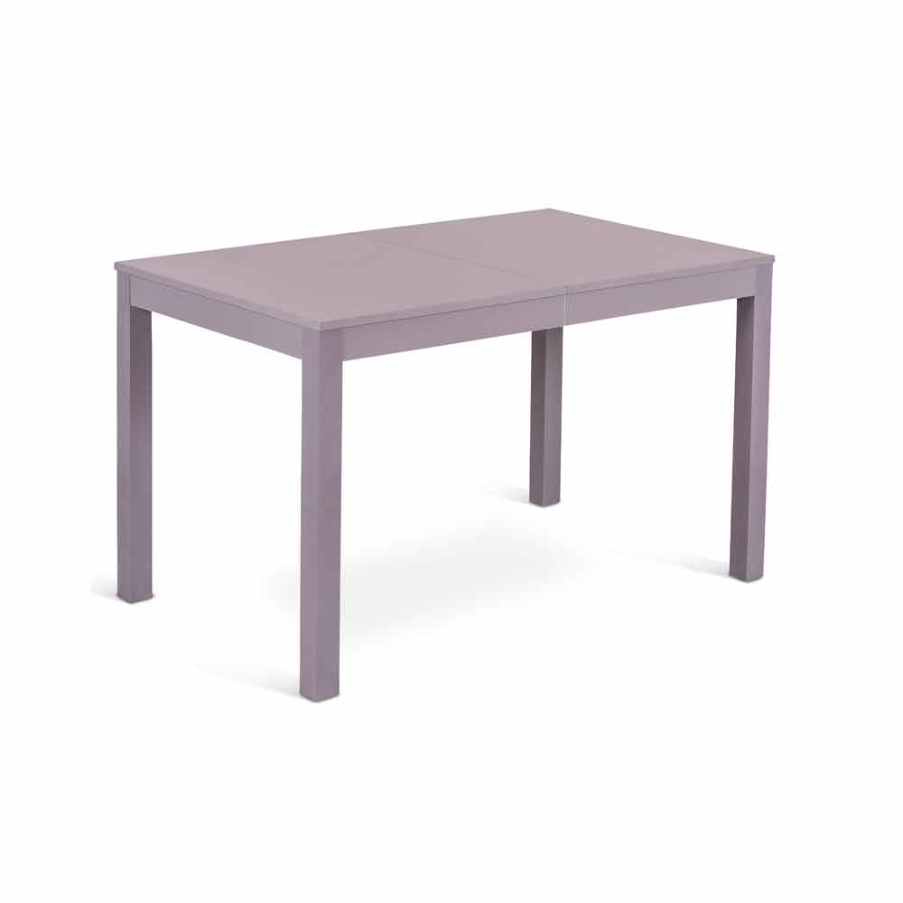 Tafel met onderstel van massief beukenhout en melamine blad. Het heeft 2 verlengstukken van elk 40 cm, die in de tafel zijn ondergebracht. Verkrijgbaar in verschillende kleuren.