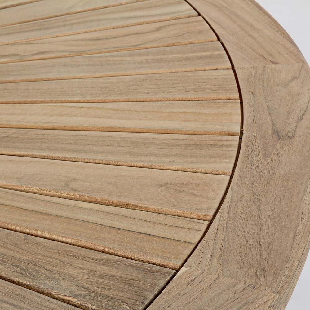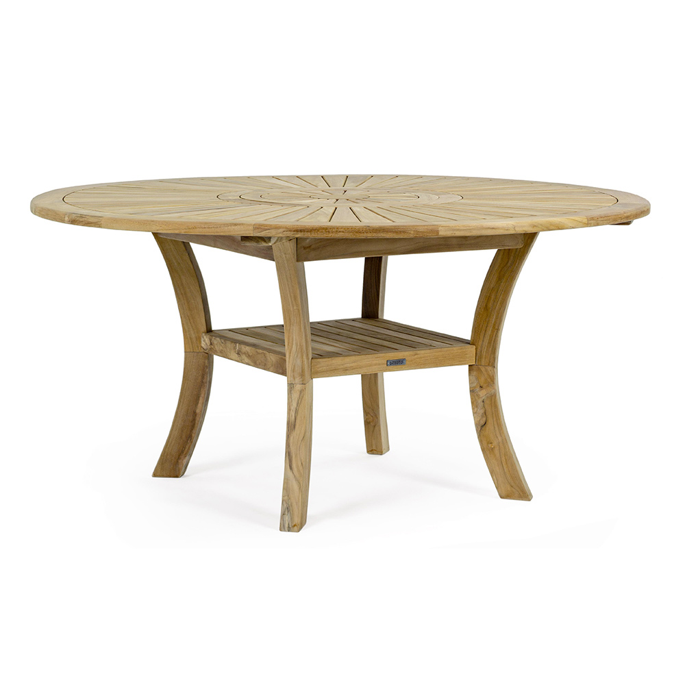 Kwaliteitsvolle tuintafel in teakhout met centraal draaibaar blad.