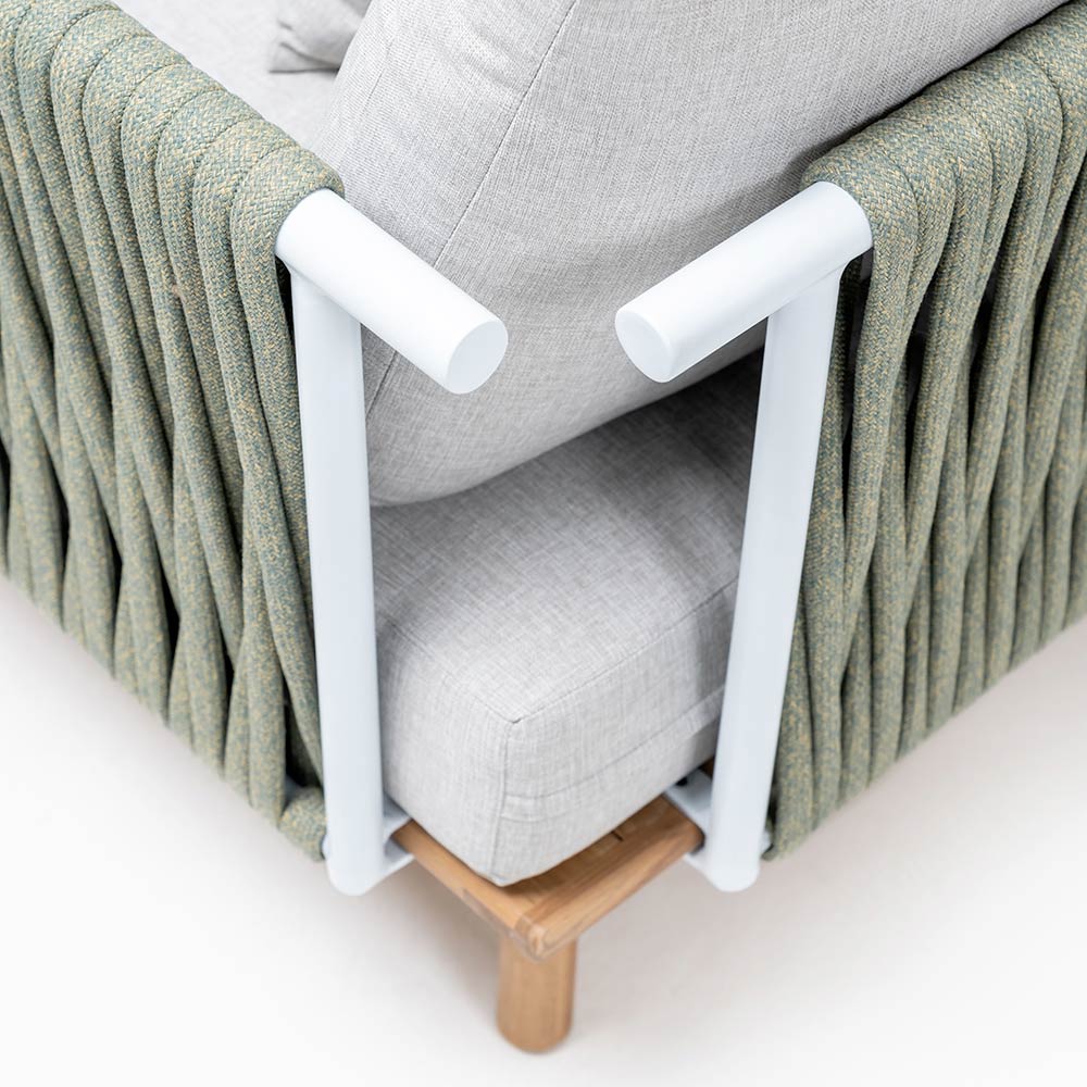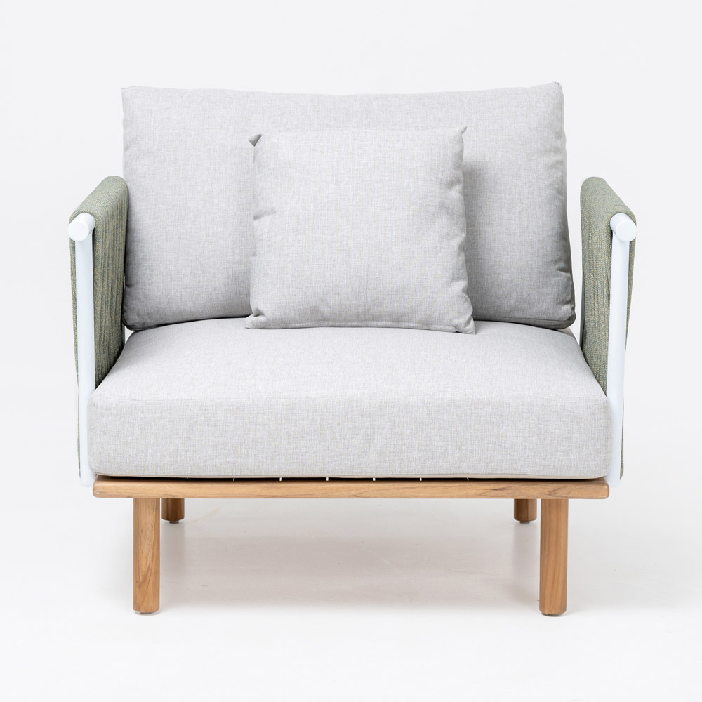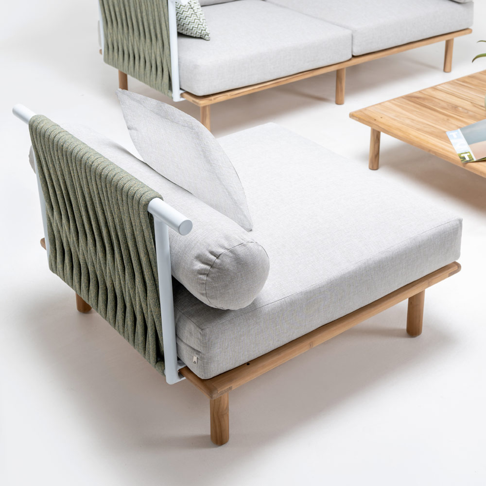 Het is een meubelstuk dat design en aandacht voor detail weerspiegelt, aspecten die zo gewaardeerd worden door de meest veeleisende klanten. Perfect voor die momenten van rust, om een boek te lezen of om vrienden en familie te ontvangen, vertegenwoordigt deze fauteuil een praktische en tegelijkertijd sofistiche keuze, die van de tuin een verlengstuk van het huis maakt.