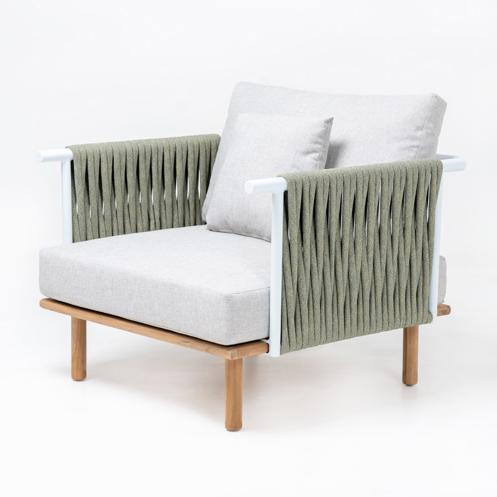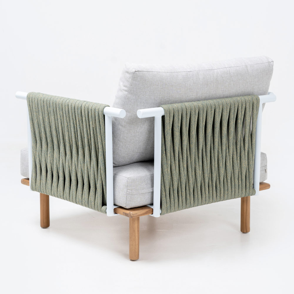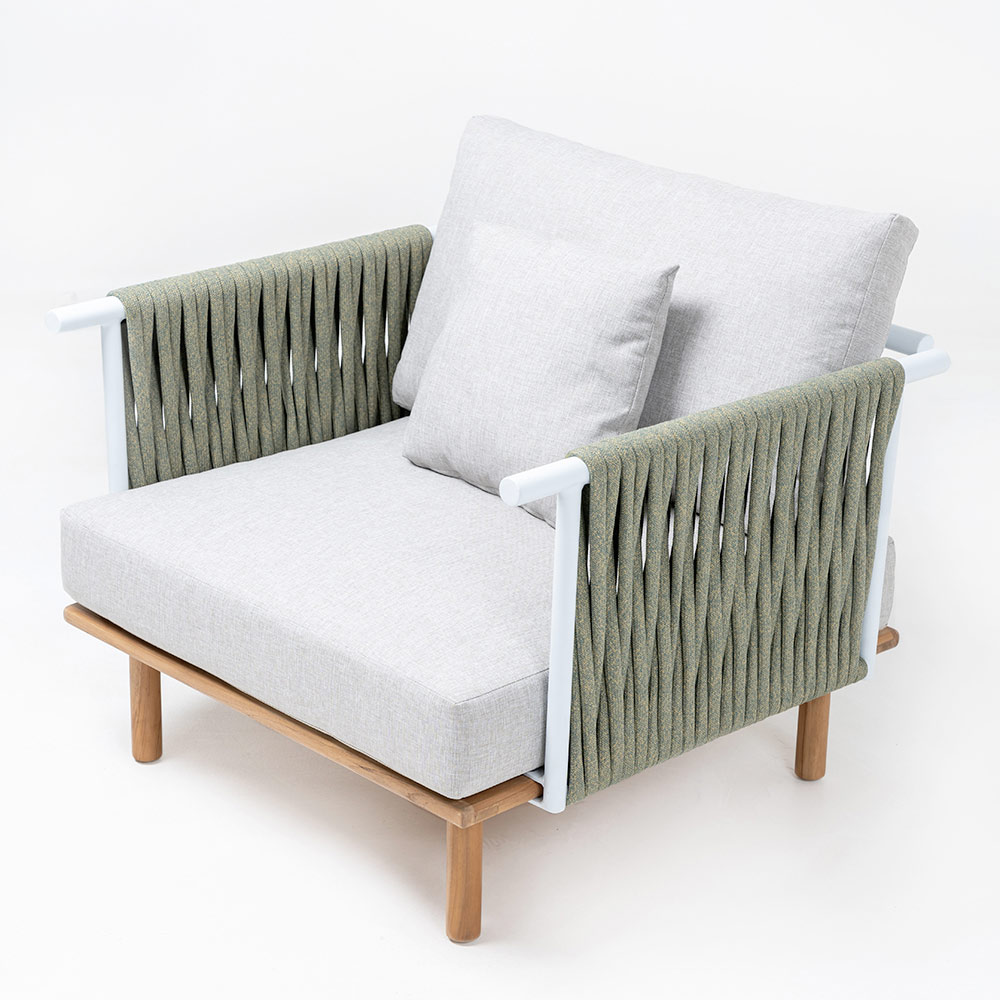 Teakhouten tuinstoel, aluminium rugleuningen en Olefin/PP ROPE vlechtwerk en kussen