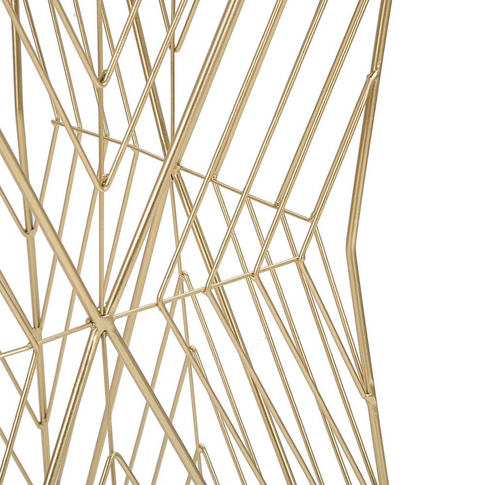 Deze salontafel combineert de warmte van modern design met de functionaliteit die in iedere woning gewenst is. De basis is een geometrische wirwar van gouden ijzeren lijnen, die elkaar kruisen en een bijna hypnotiserend effect creëren, een sculptuur die een sober steunvlak ondersteunt. Het open silhouet belast de ruimte niet, maar voegt eerder een element van lichte elegantie toe.