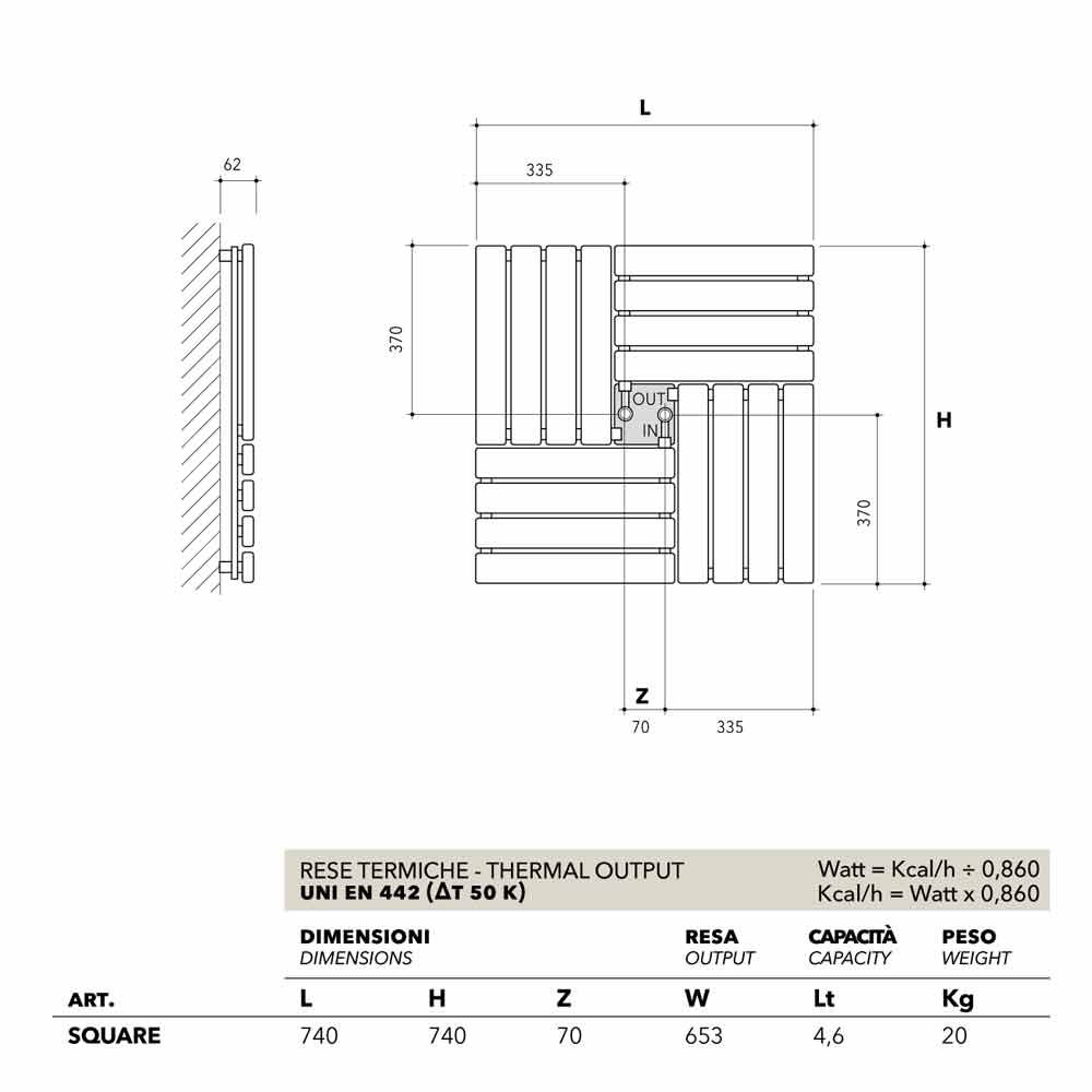 Vierkante hydraulische designradiator gemaakt in Italië Vierkant van Scirocco H
