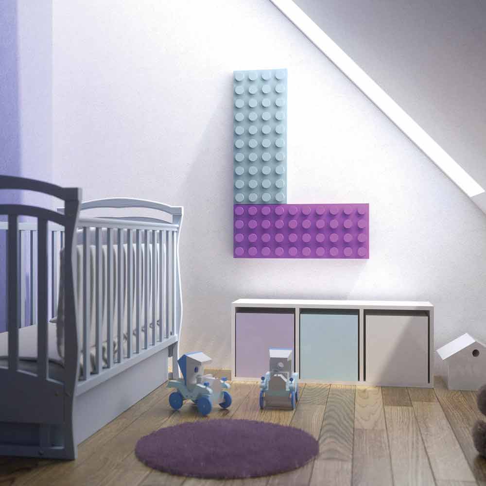 Kleurrijke radiator met een moderne en leuke stijl, in de hydraulische versie. Een project geïnspireerd op een affectief icoon dat door iedereen wordt gedeeld. Meerdere kleurencombinaties voor horizontale en verticale modulaire elementen. Net als in een bouwspel worden de elementen gecombineerd en plaatsen ze zich naast elkaar, afhankelijk van de beschikbare ruimte en de benodigde thermische output.