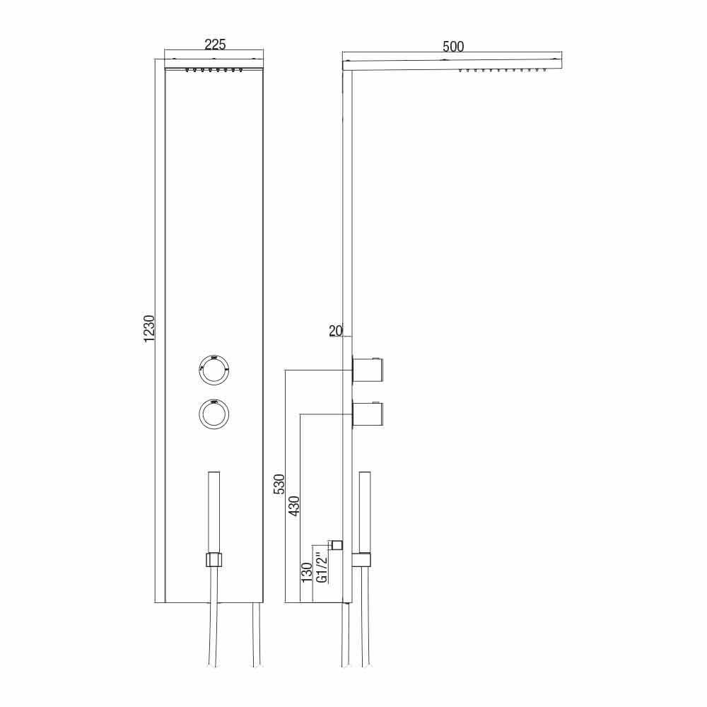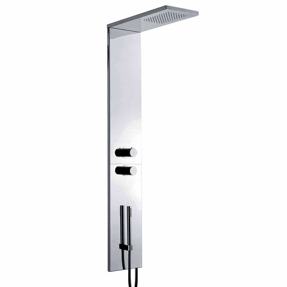 Modern en elegant thermostatische wanddouche kolom volledig gemaakt in Italië in roestvrij staal met chromen afwerking. De ontmoeting tussen functionaliteit en design brengt een prachtig meubelstuk tot leven, ideaal voor het aanvullen en verrijken van elke badkamer met eigentijdse kenmerken en originaliteit. De geometrische lijnen met essentiële kenmerken creëren de perfecte douchekolom voor wie op zoek is naar een verfijnde en uiterst innovatieve smaak die het meubilair radicaal kan veranderen door een vleugje persoonlijkheid te brengen .