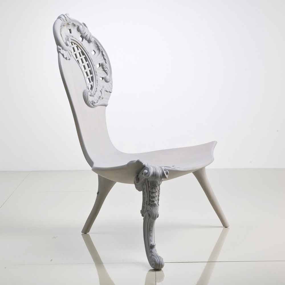 Throne hand gesneden massief eiken grijs ontwerp, Leon
