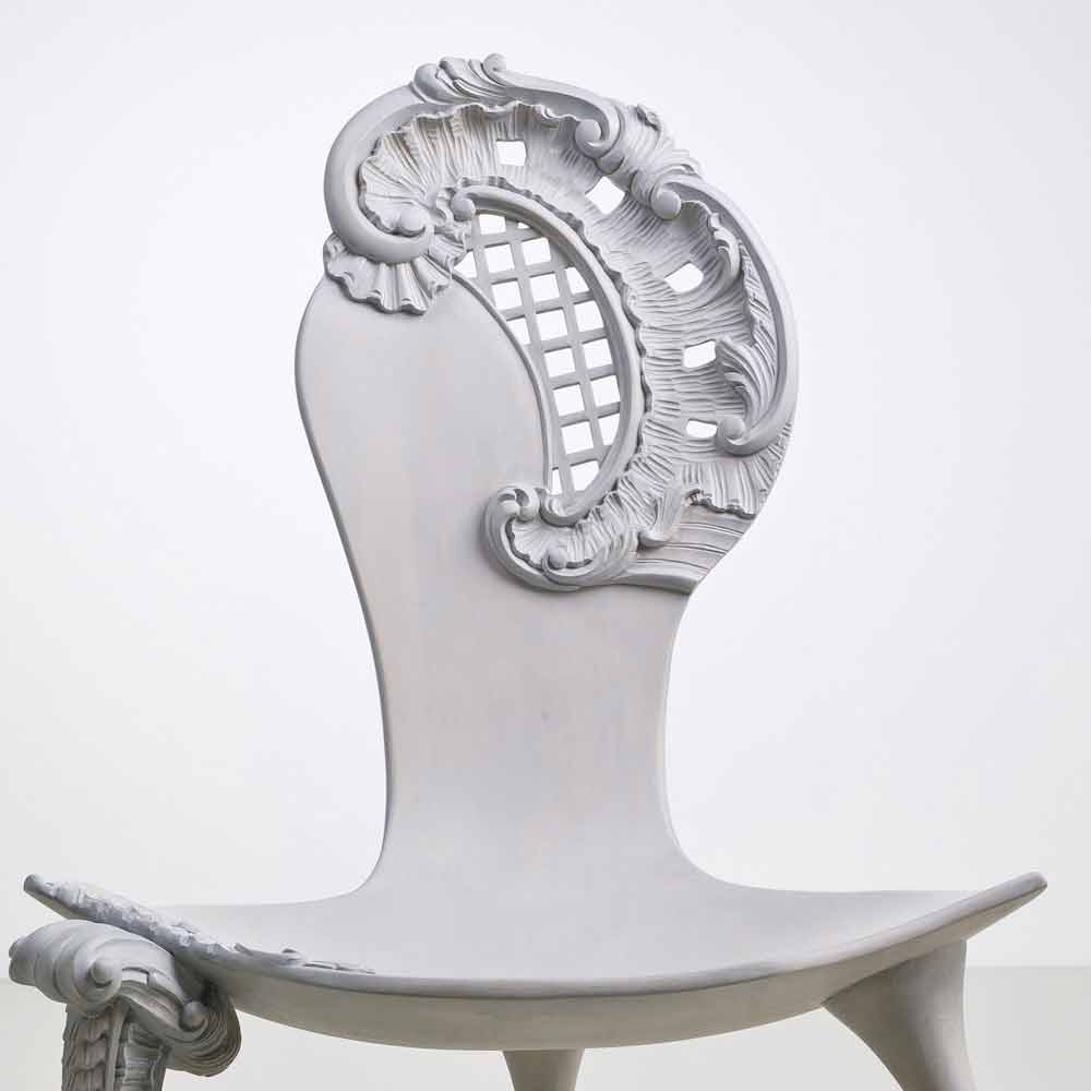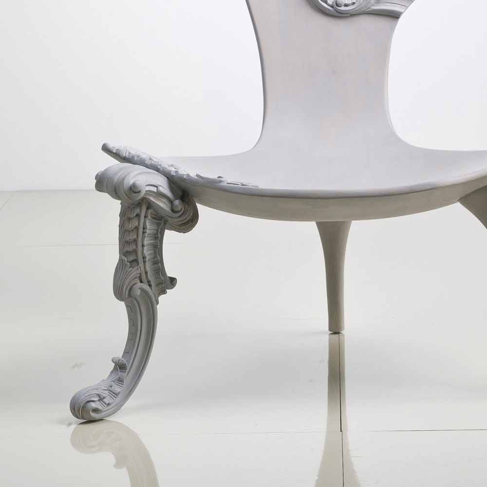 Leon is een houten met de hand gesneden troon met solide terug met barokke inrichting en zitting in massief hout. Een gladde houtfoelie worden de zachte profiel in sommige van de delen zich tot een weelderige barokke werken. Bijna alsof het hout langzaam tot leven komen, de stoel groeit een soort bloemen hoed, compleet met een sluier, terwijl het been is verrijkt met ingewikkelde houten krullen. Grijs eiken afwerking (antraciet).