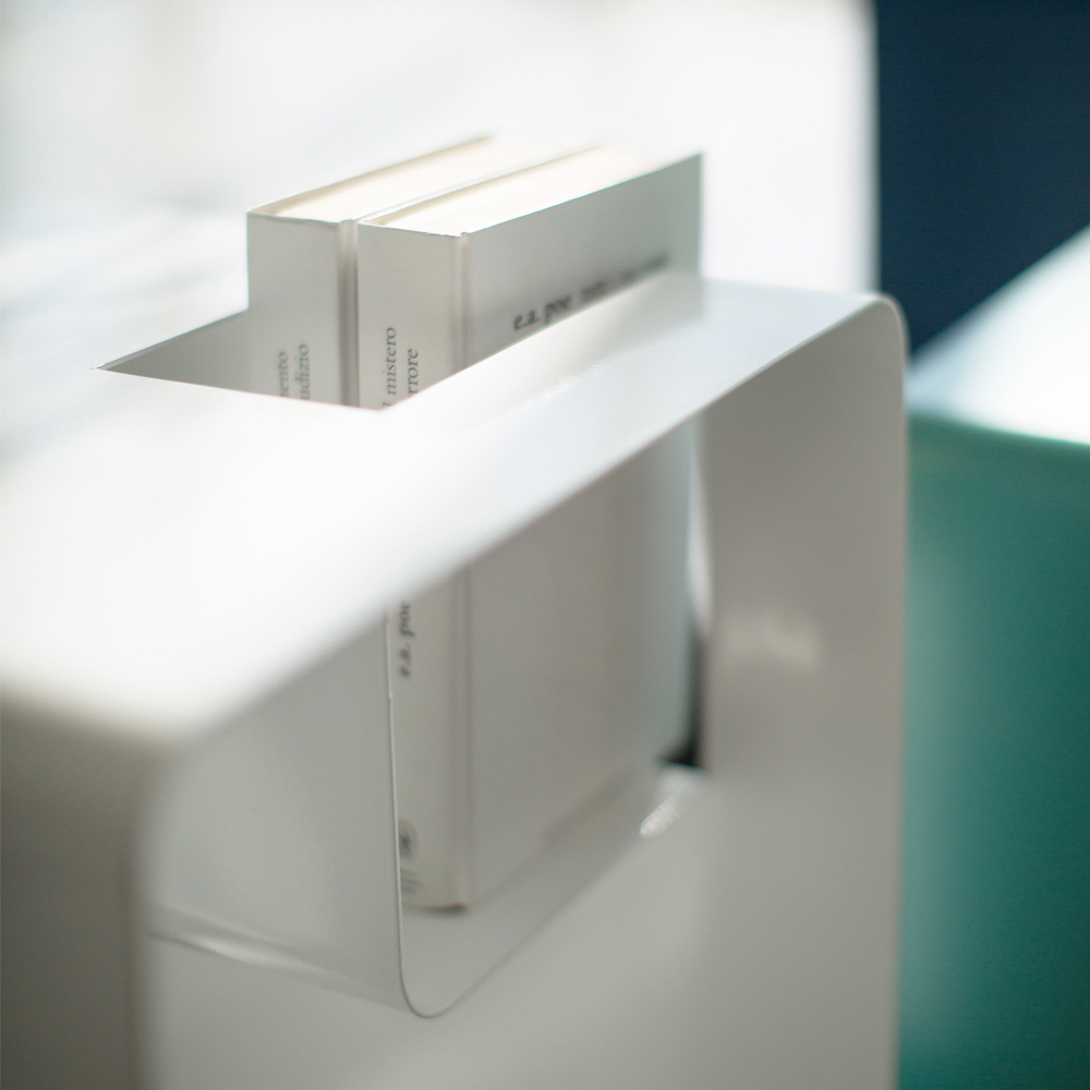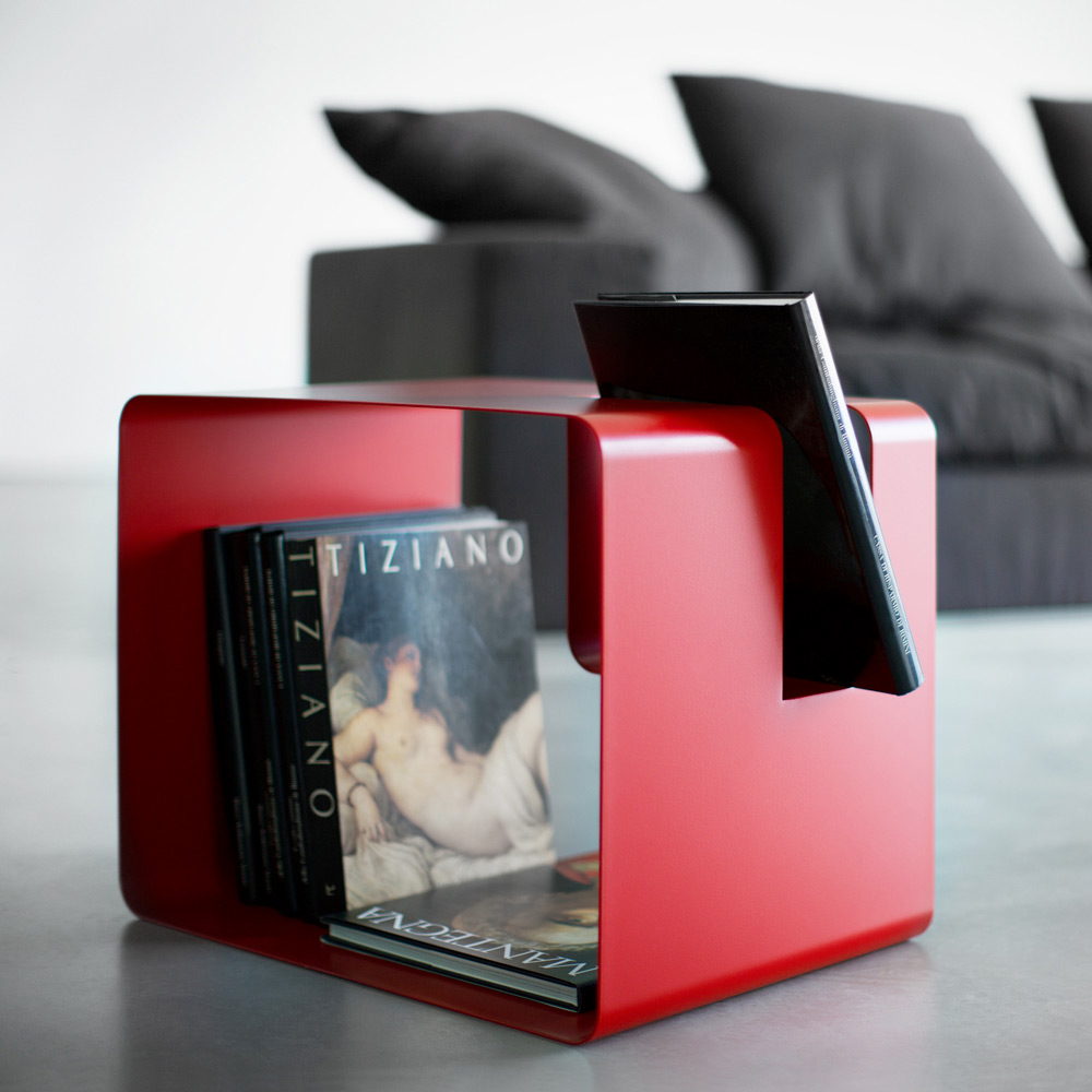 Dit lichte en veelzijdige tijdschriften- en boekenrek, dat ook gebruikt kan worden als nachtkastje of salontafel, past zich aan elke ruimte aan dankzij zijn kleine formaat van 2 mm dikte.
