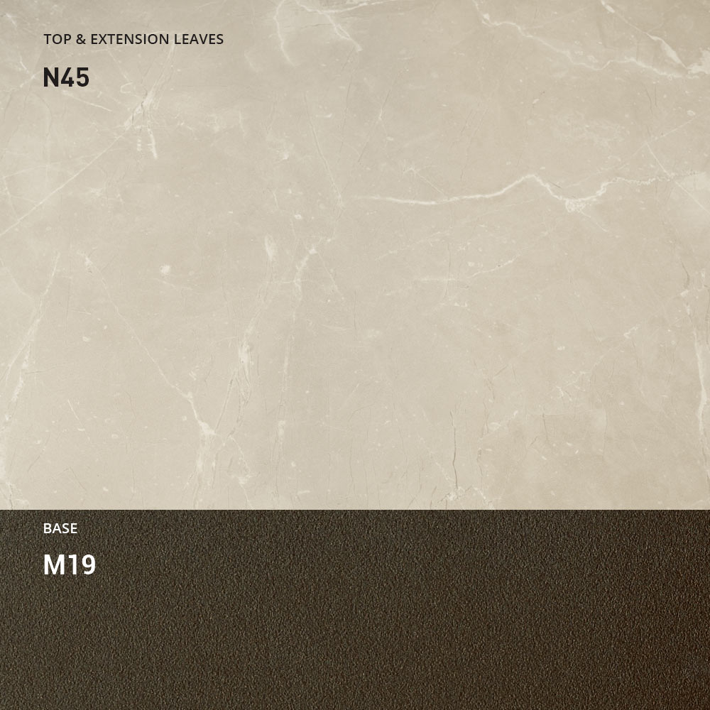 Het blad is verkrijgbaar in melamine, mat keramiek, glas en morteleffect in een breed scala aan afwerkingen.