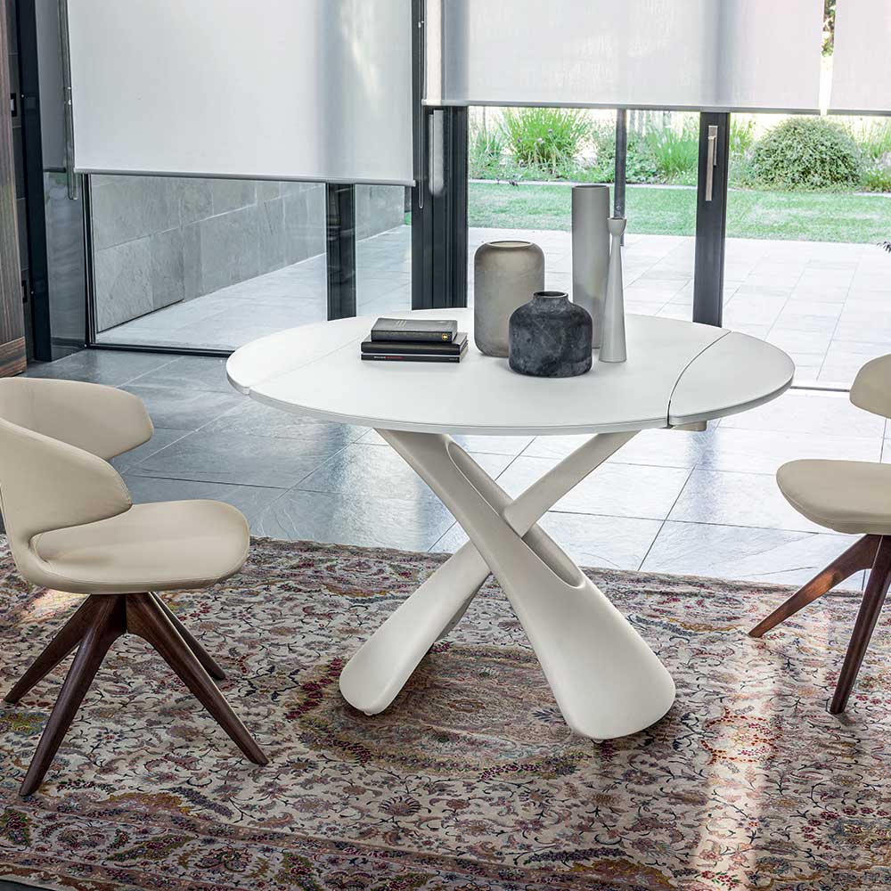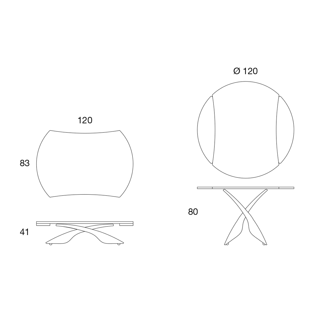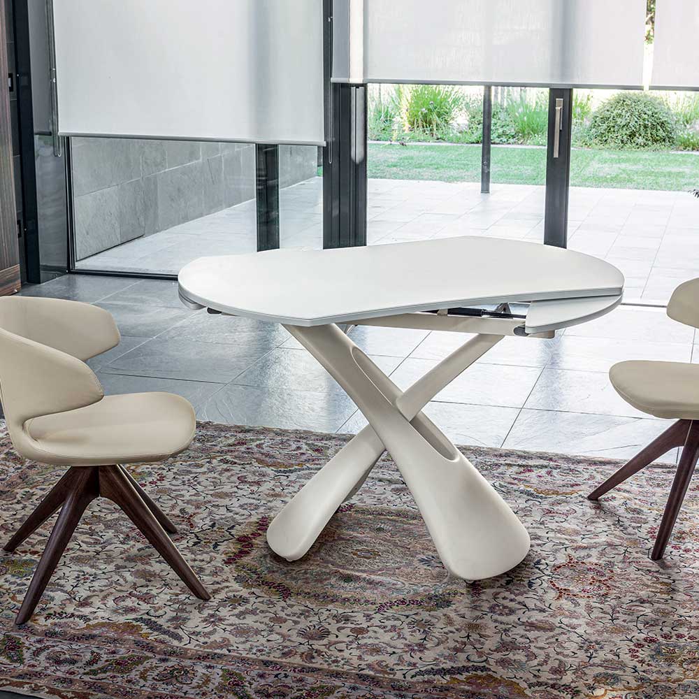 Salontafel om te bouwen tot eettafel met metalen onderstel en glazen blad, made in Italy.