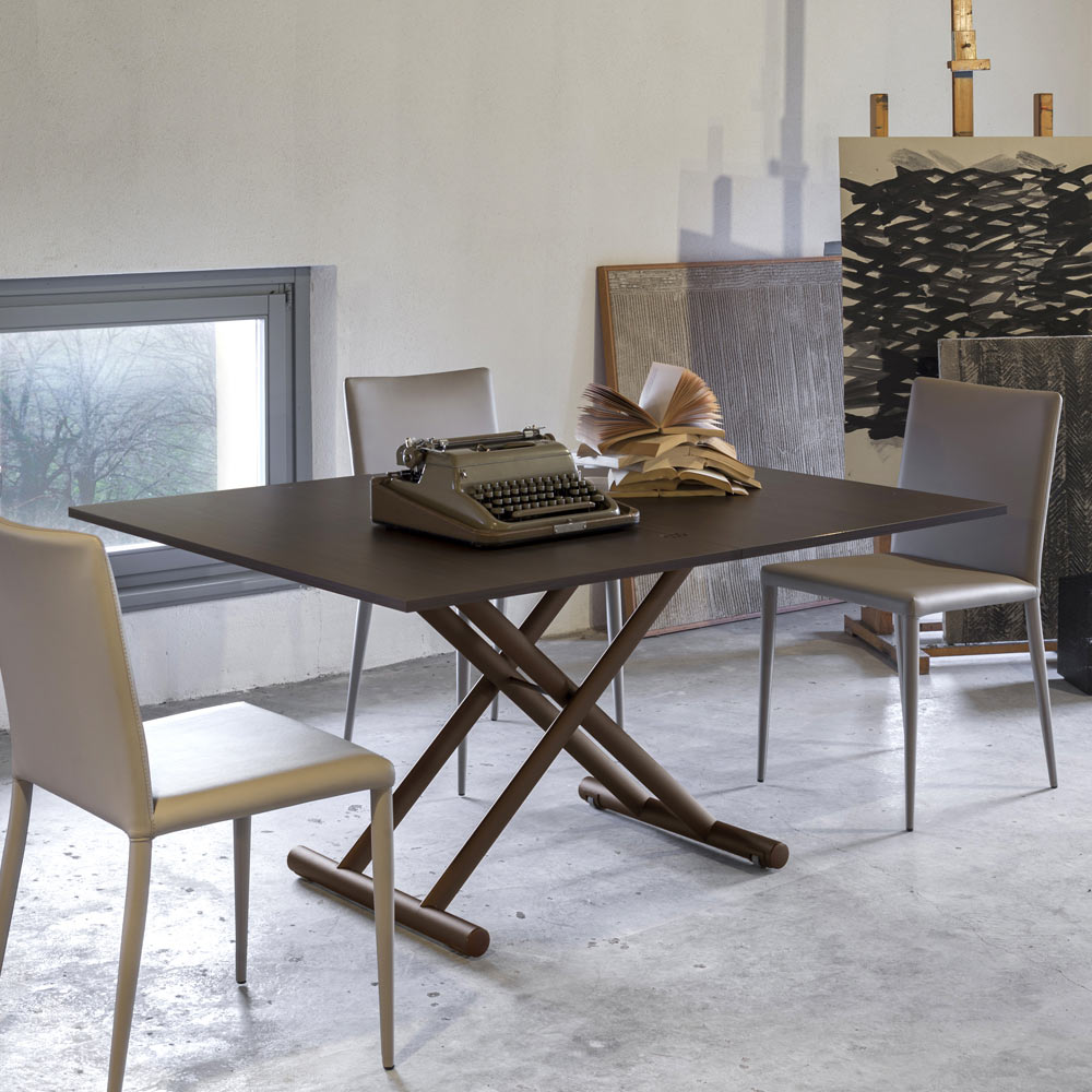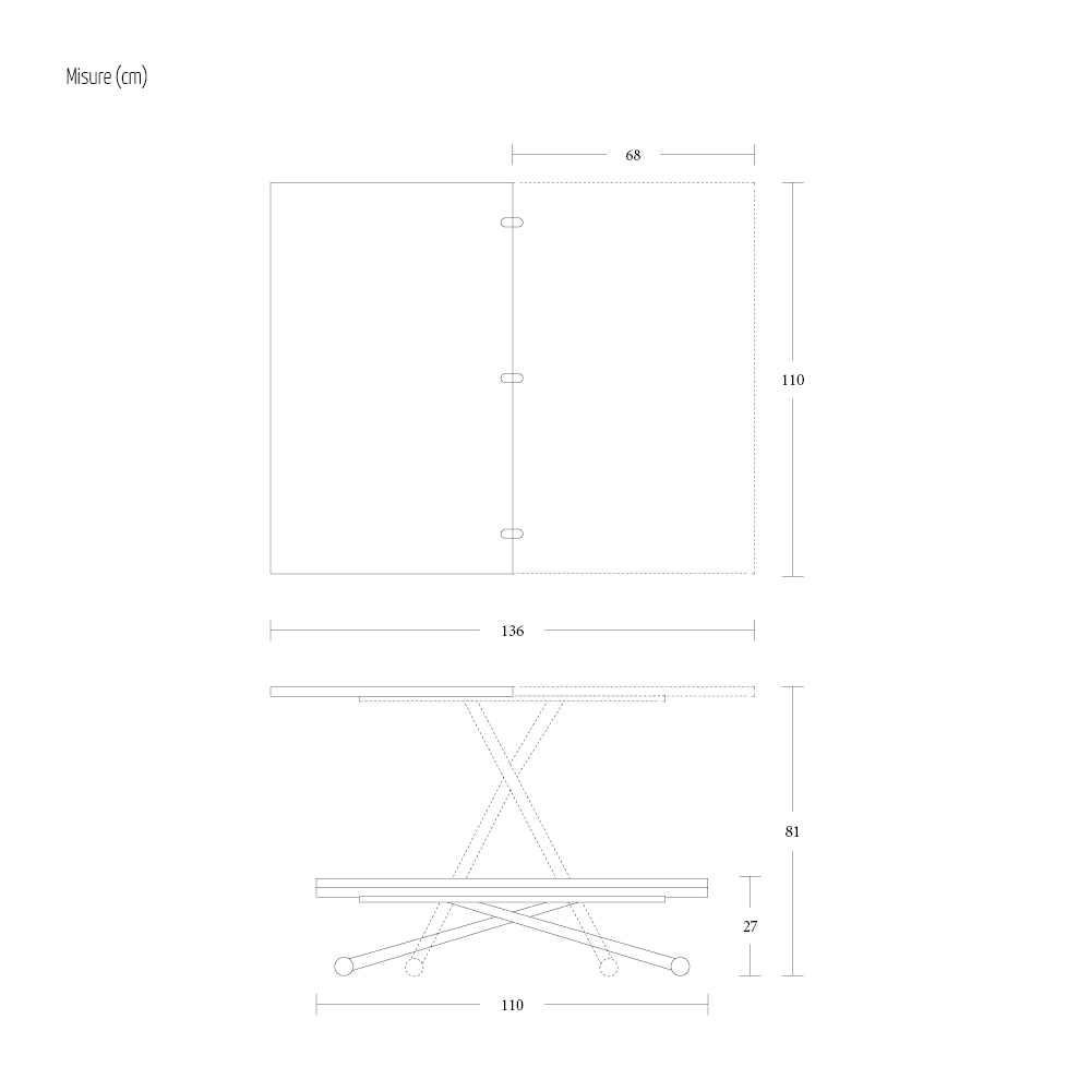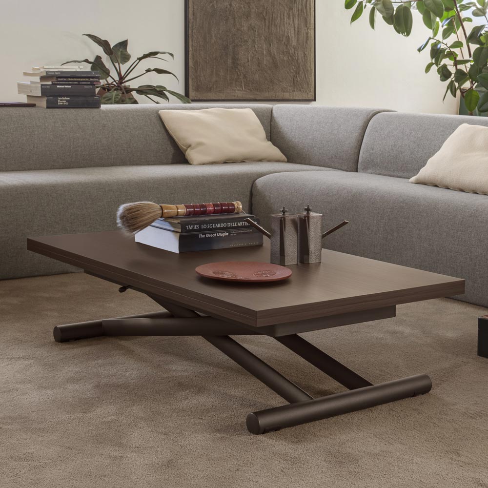 Transformeerbare salontafel in melamine hout en metaal Made in Italy.