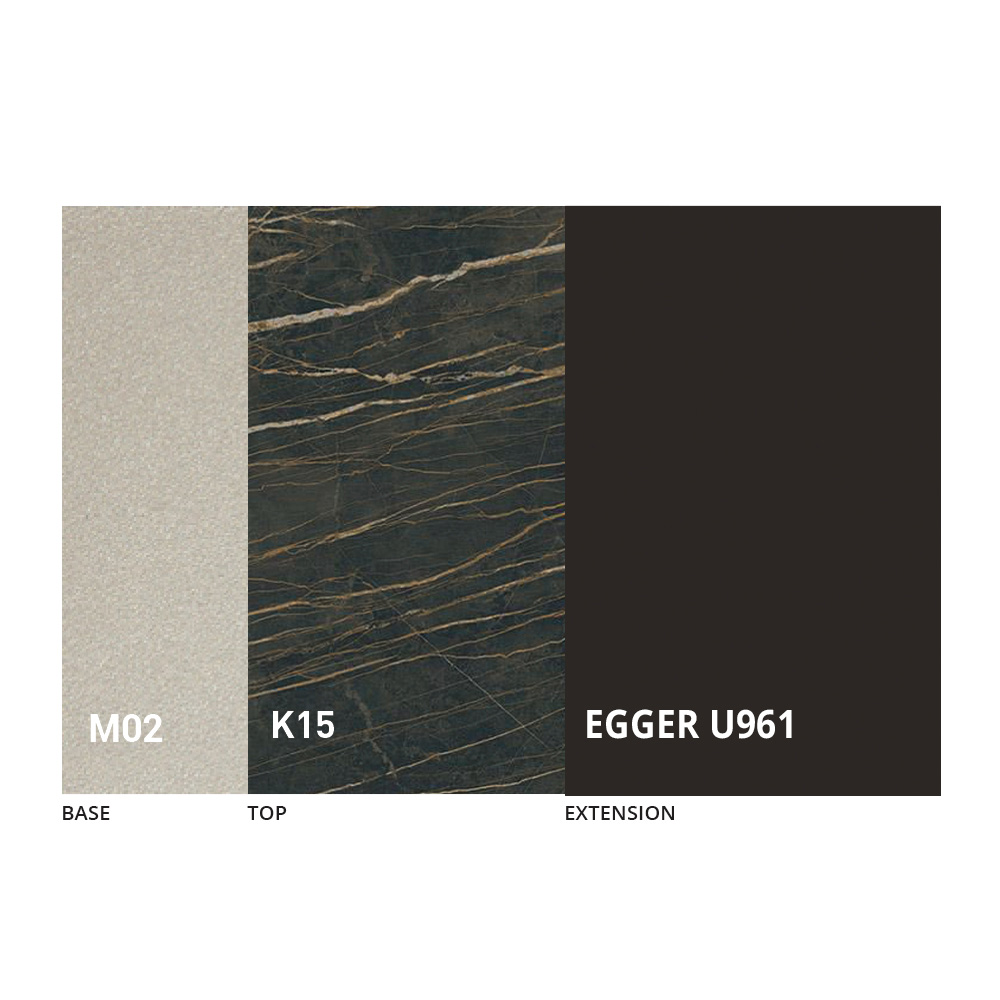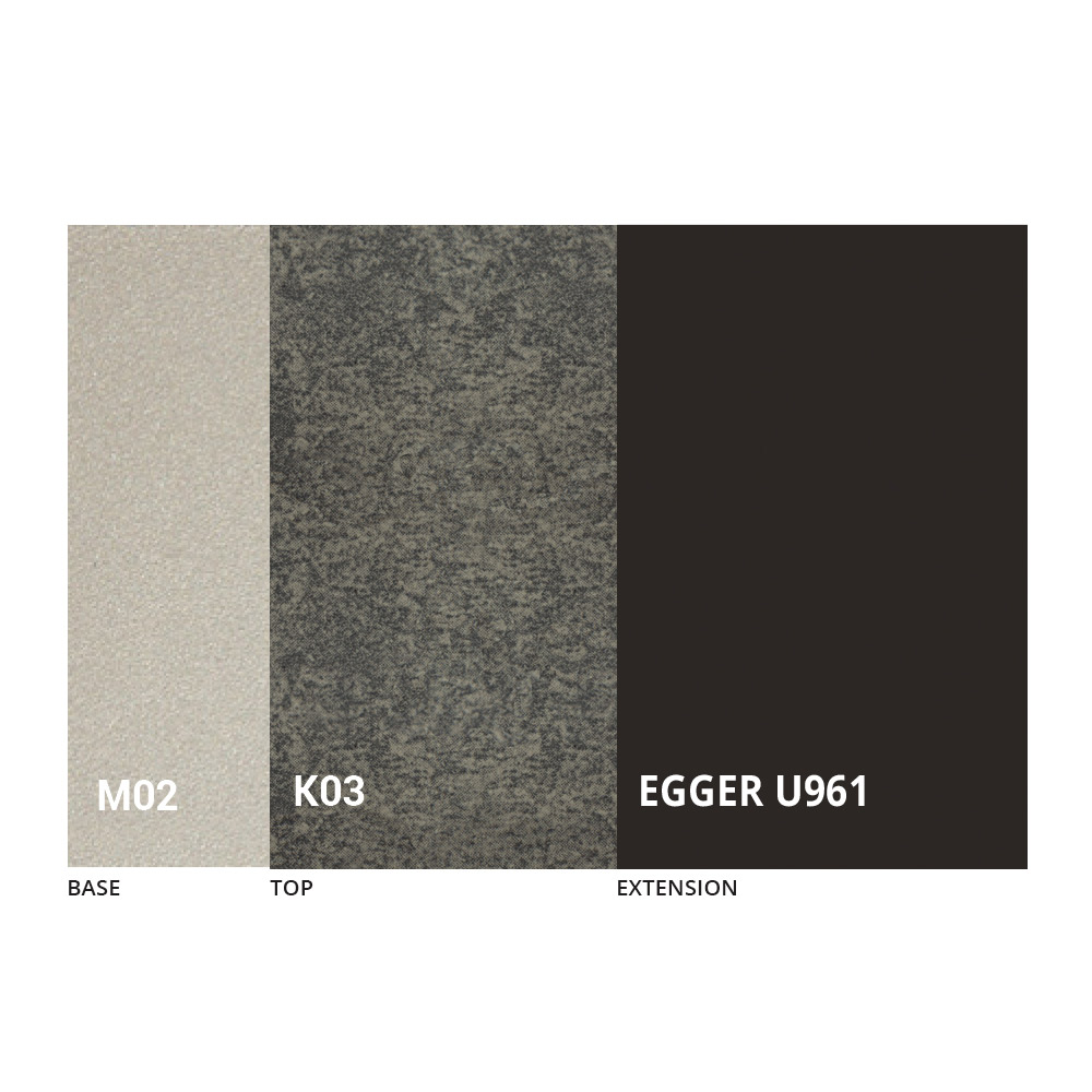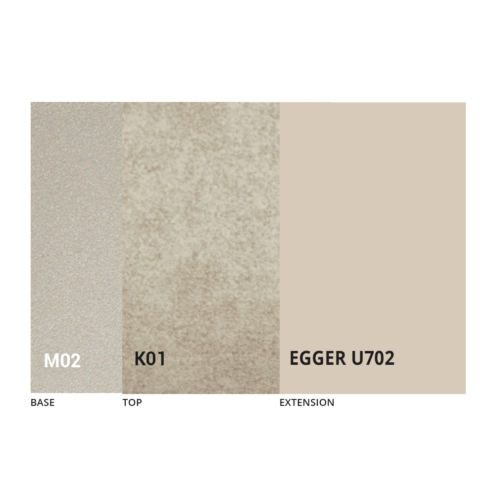 mat keramisch blad met een binnenzijde van melamine, gecoördineerd met het blad en het onderstel van