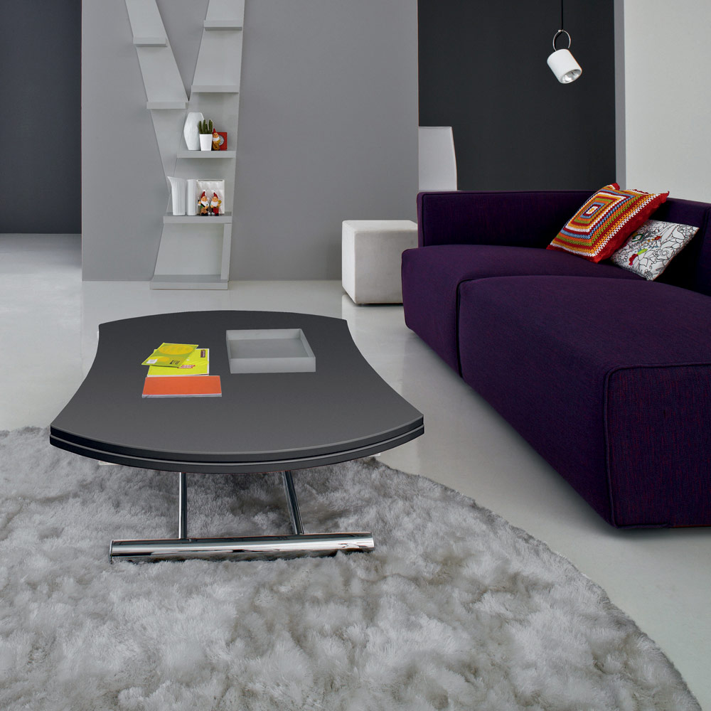 salontafel verandert in een eettafel door middel van een gasmechanisme