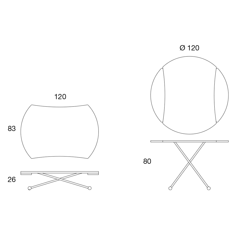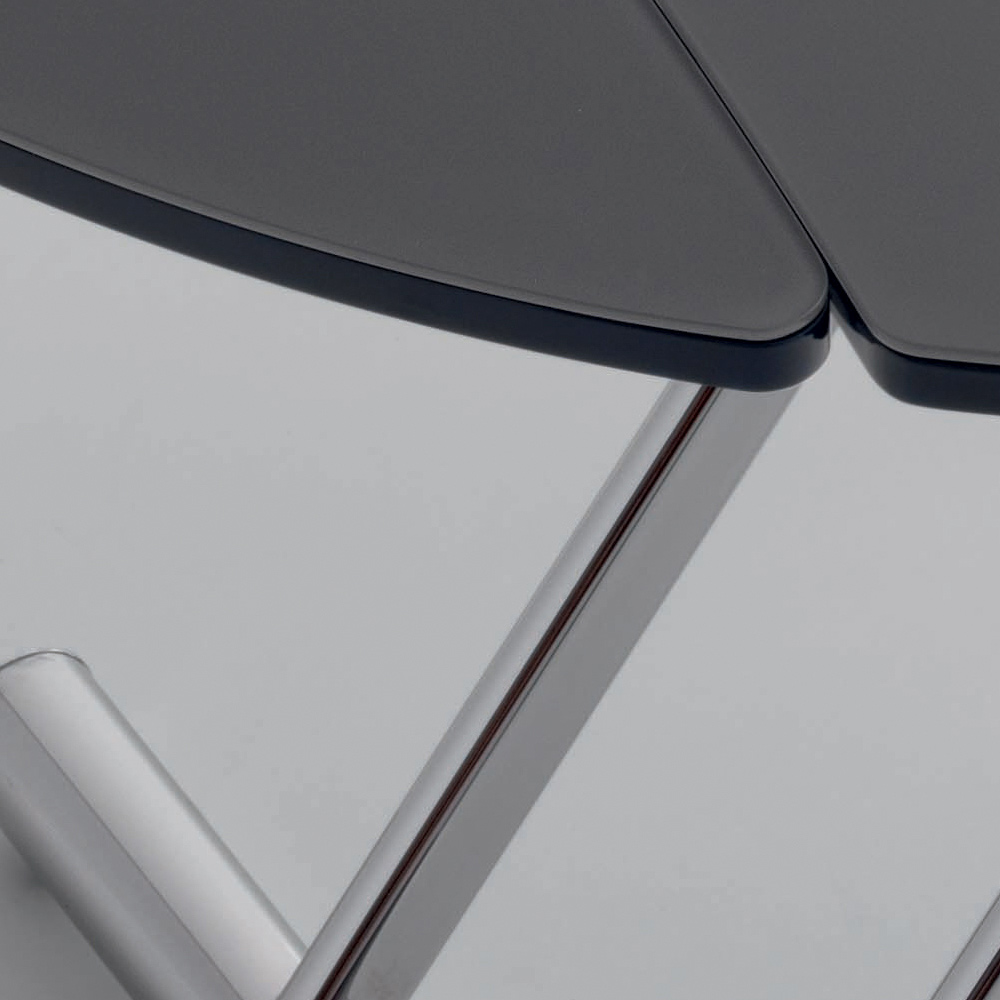 Converteerbare salontafel, metalen onderstel en glazen blad, gemaakt in Italiaans design.