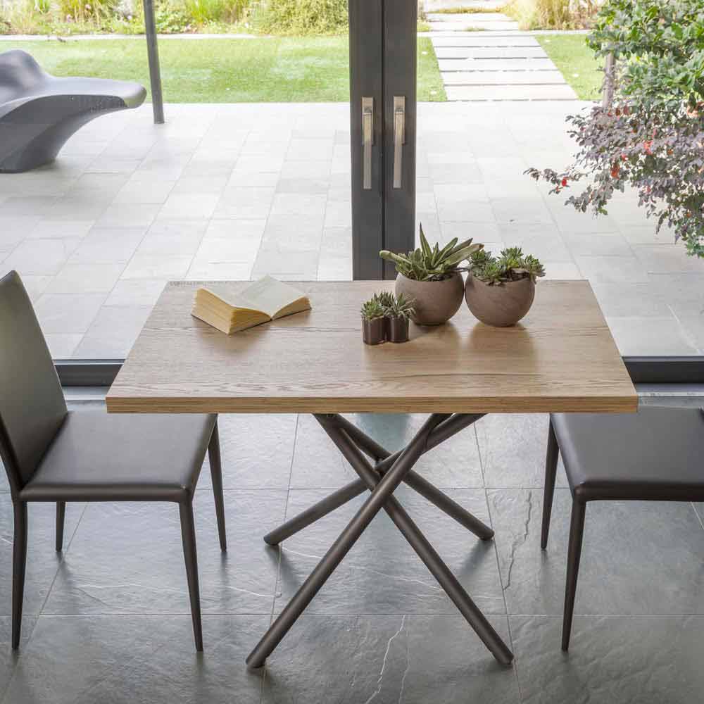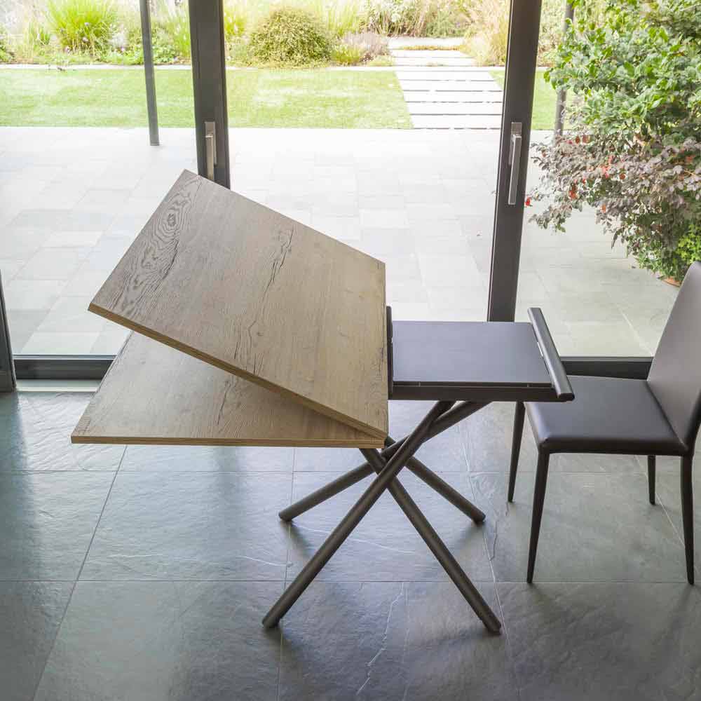 Converteerbare salontafel van metaal en hout gemaakt in Italië.