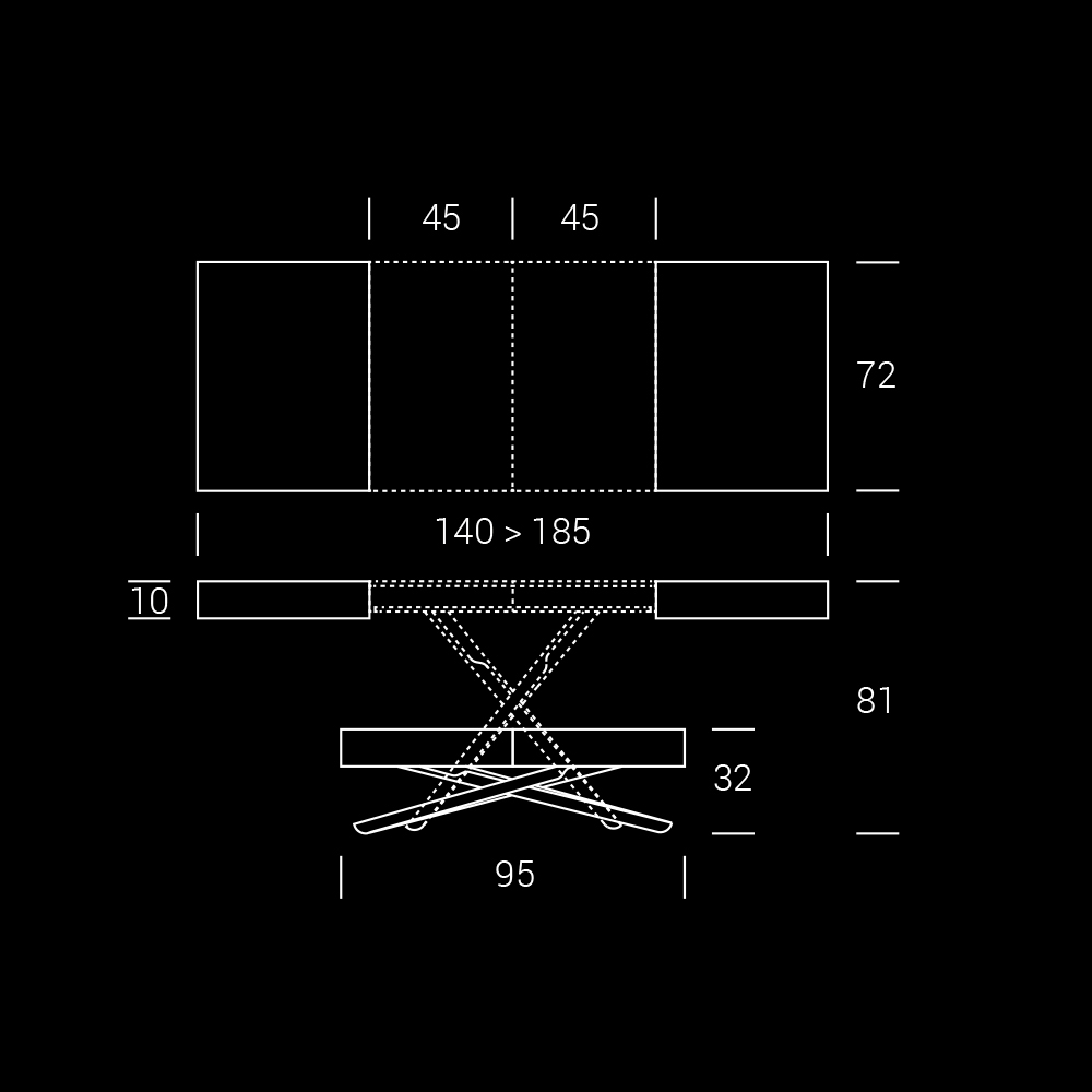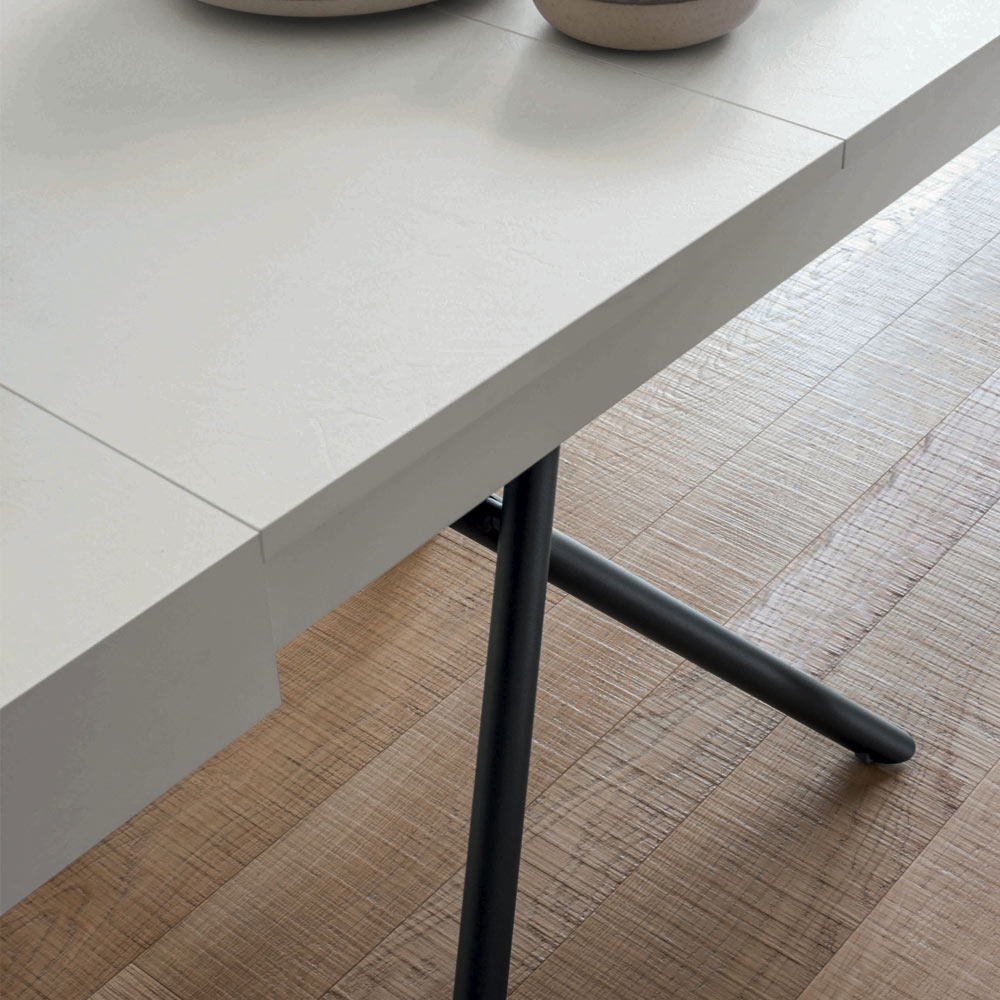 NB : bij het openen van de tafel is het noodzakelijk om de verlenging op te tillen, deze ter hoogte van het blad te plaatsen en pas daarna te openen.
