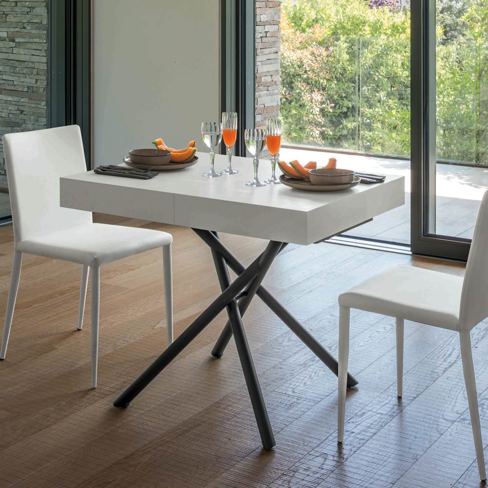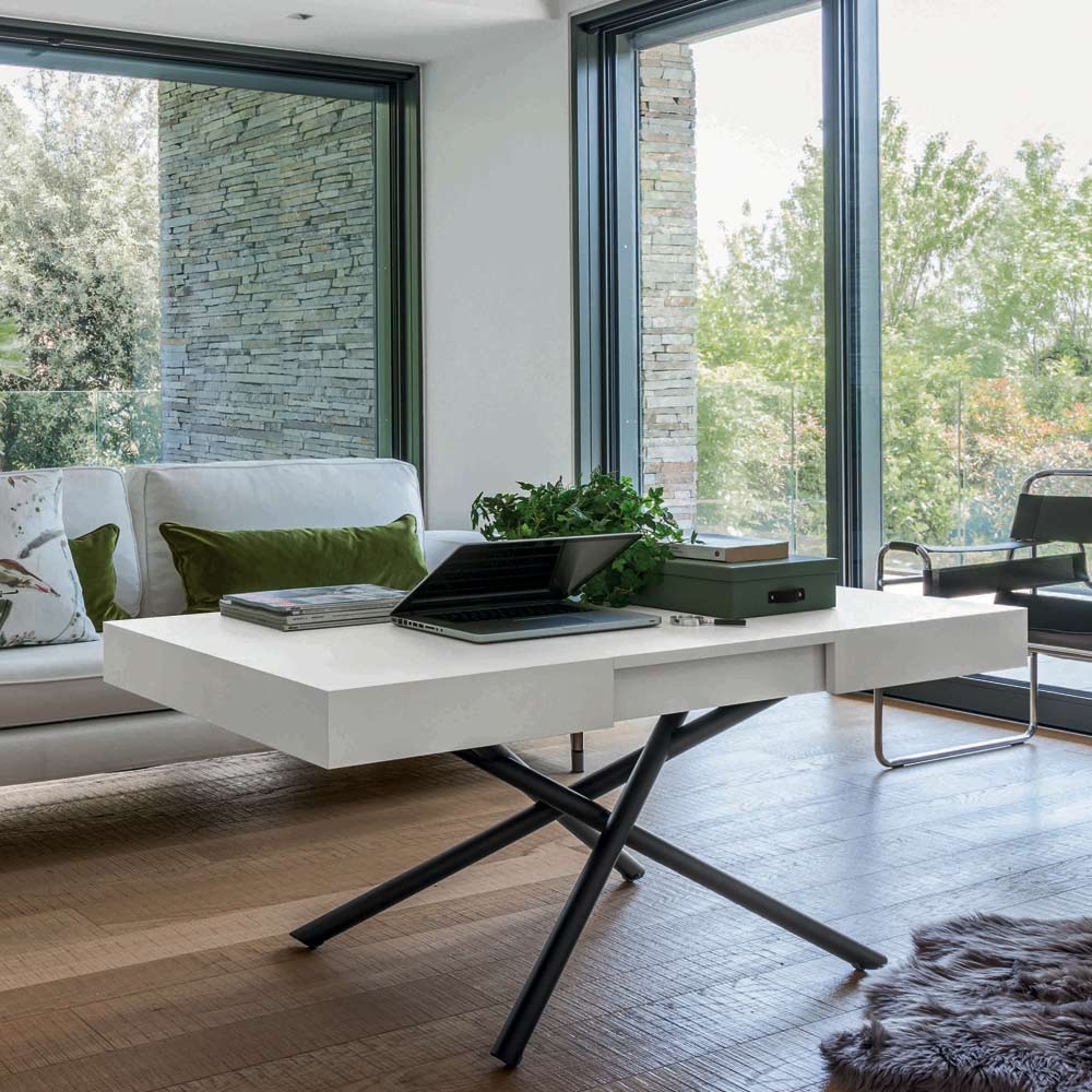 Transformeerbare salontafel in melamine hout en metaal Made in Italy.